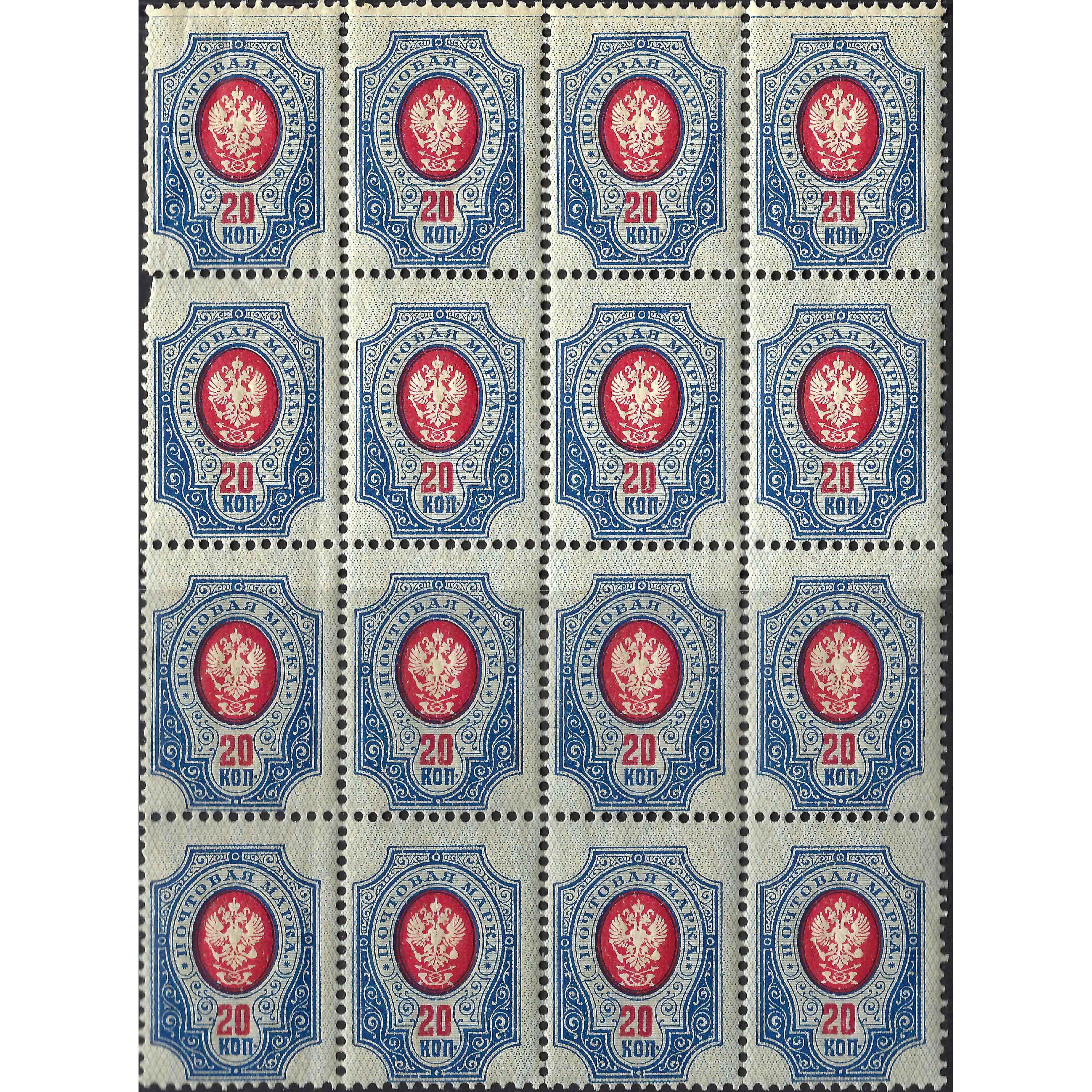 1908, Russian Empire, 20k, Solovyov #73 / Michel #72A, Typographed, UnWmk, P14:14½