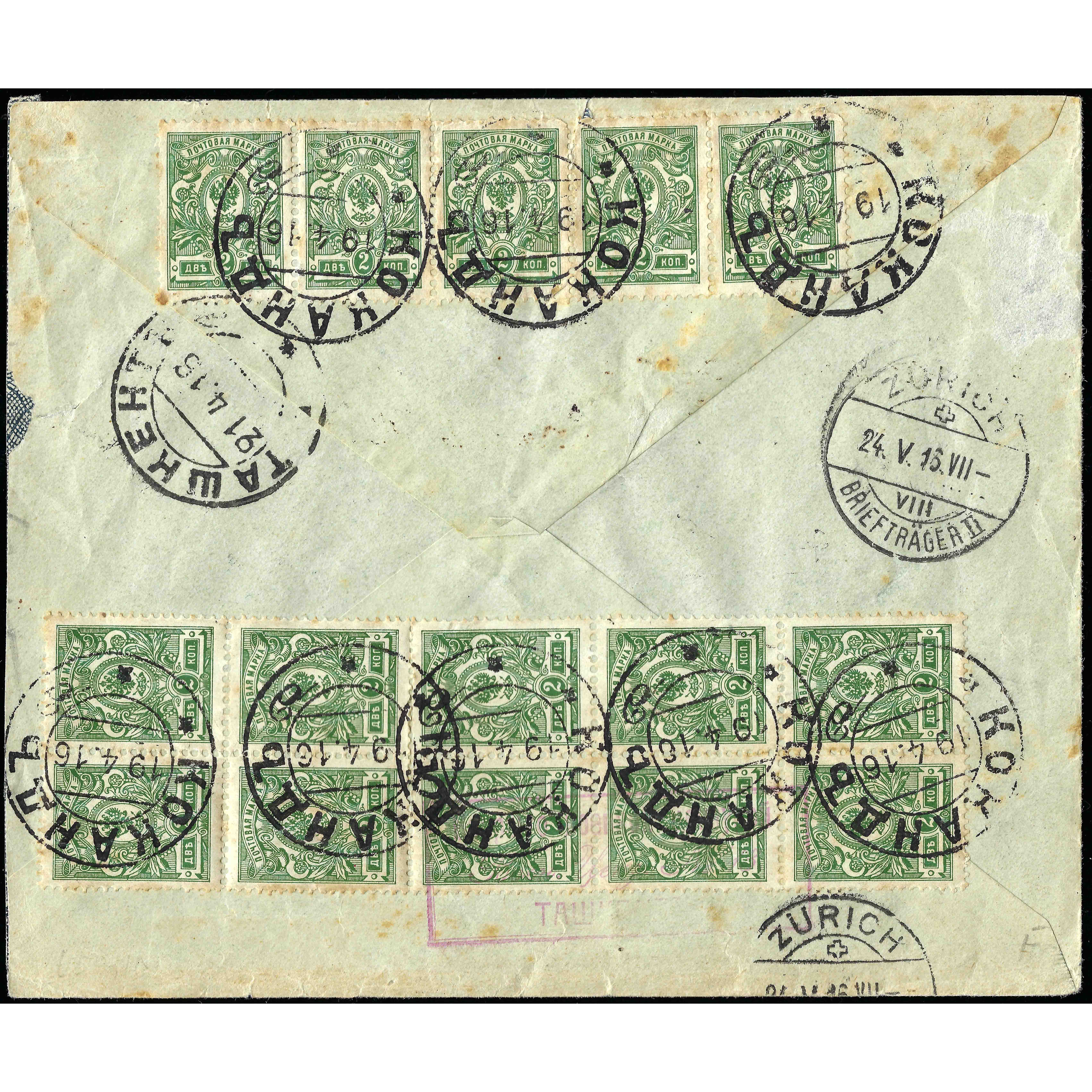 1916, Russian Empire, Registered letter sent from Kokand to Zurich
