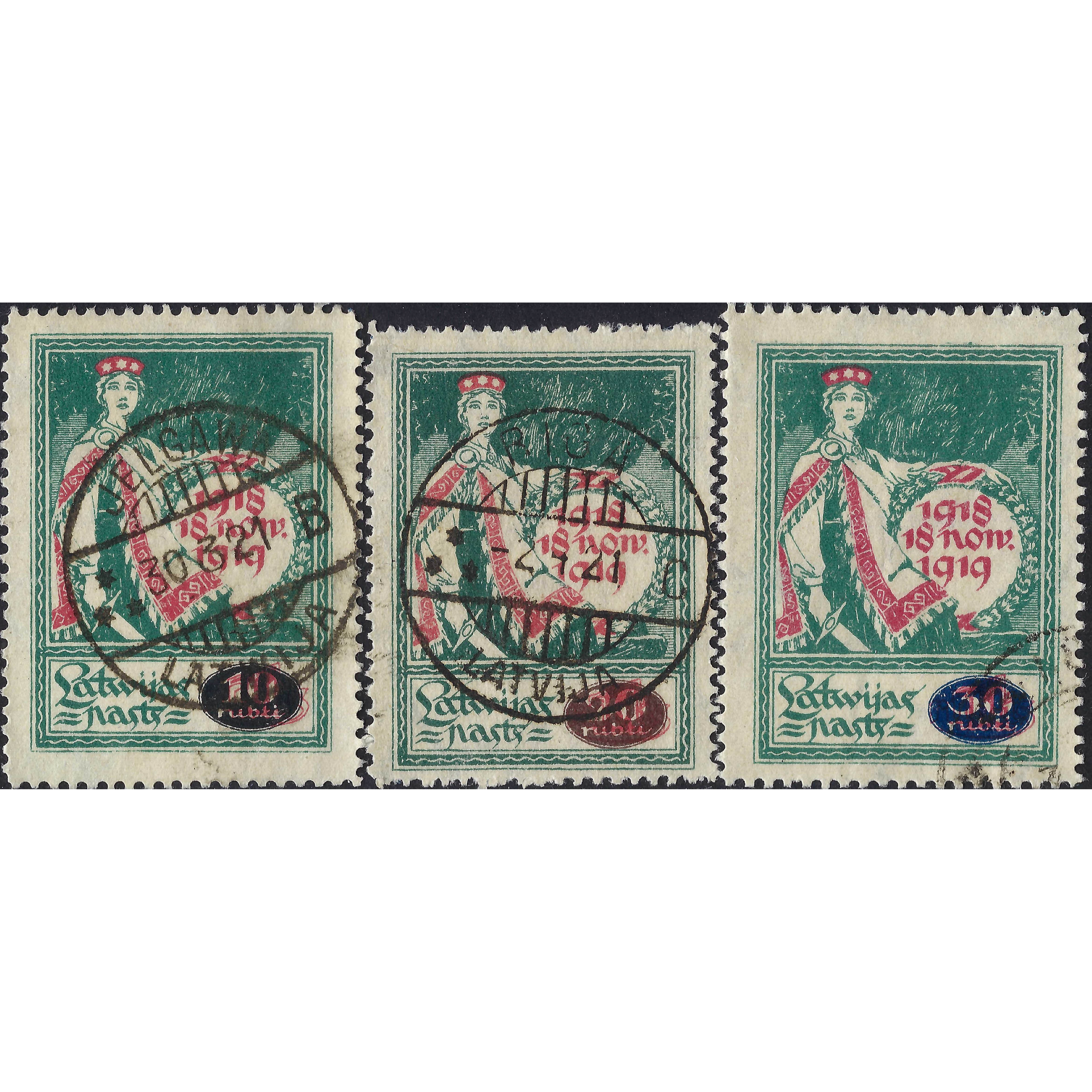 1920, Latvia, 10/1Rub-30/1Rub, Solovjovs #48-#50, Litogrāfija, Bez zīmoga, P11.5