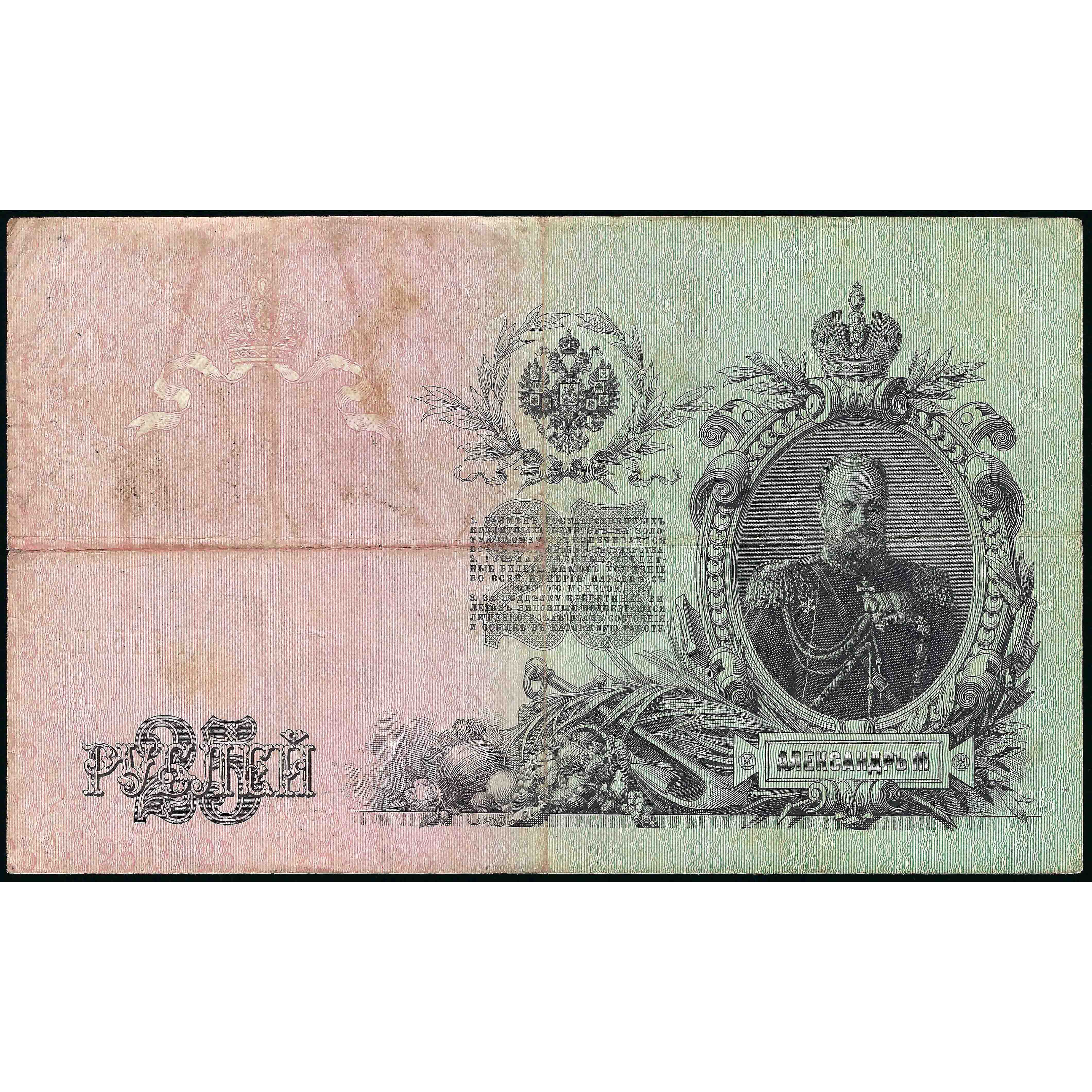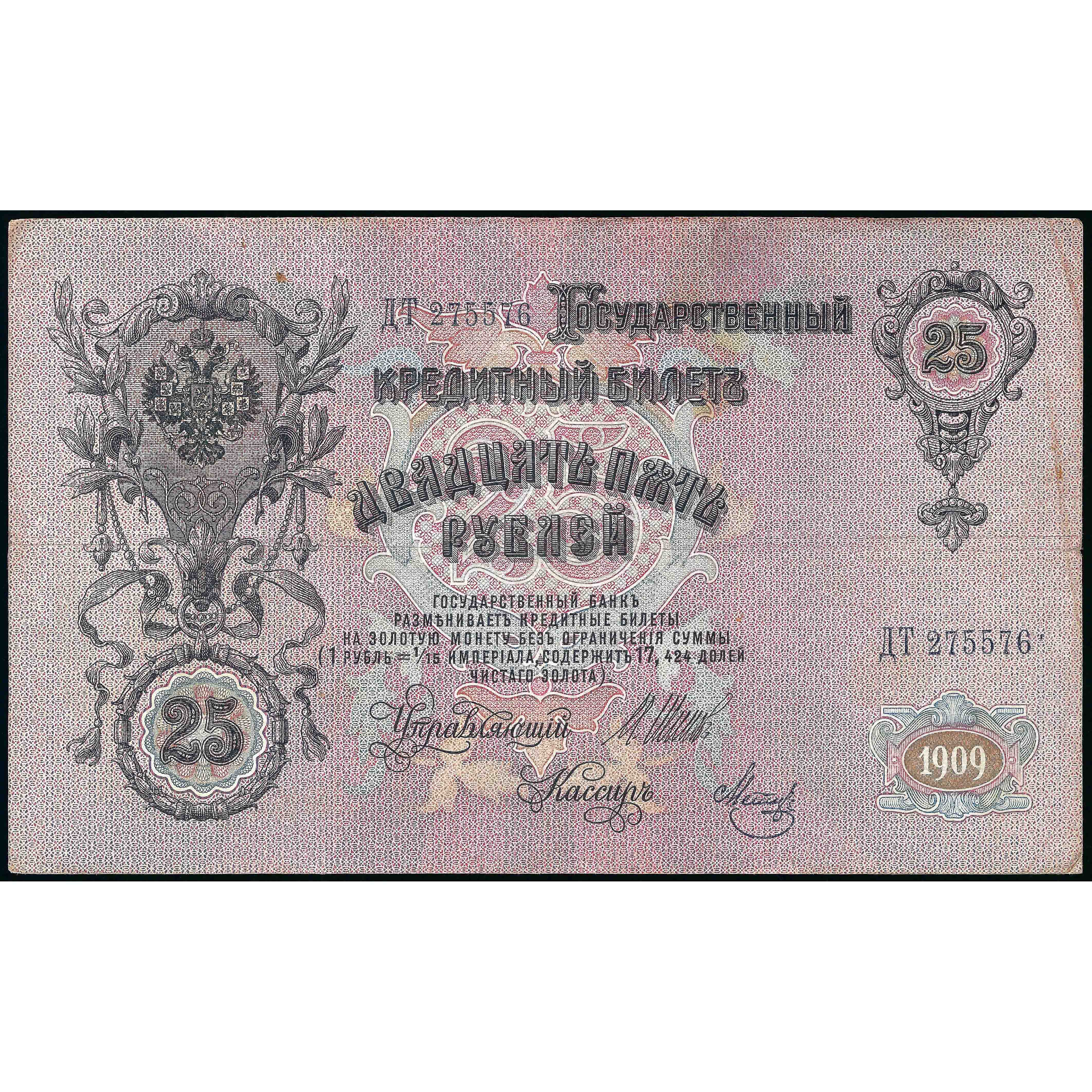 25 рублей, Россия, 1909 г. (1917), подписи Шипов / Метц (VF), Pick 12b