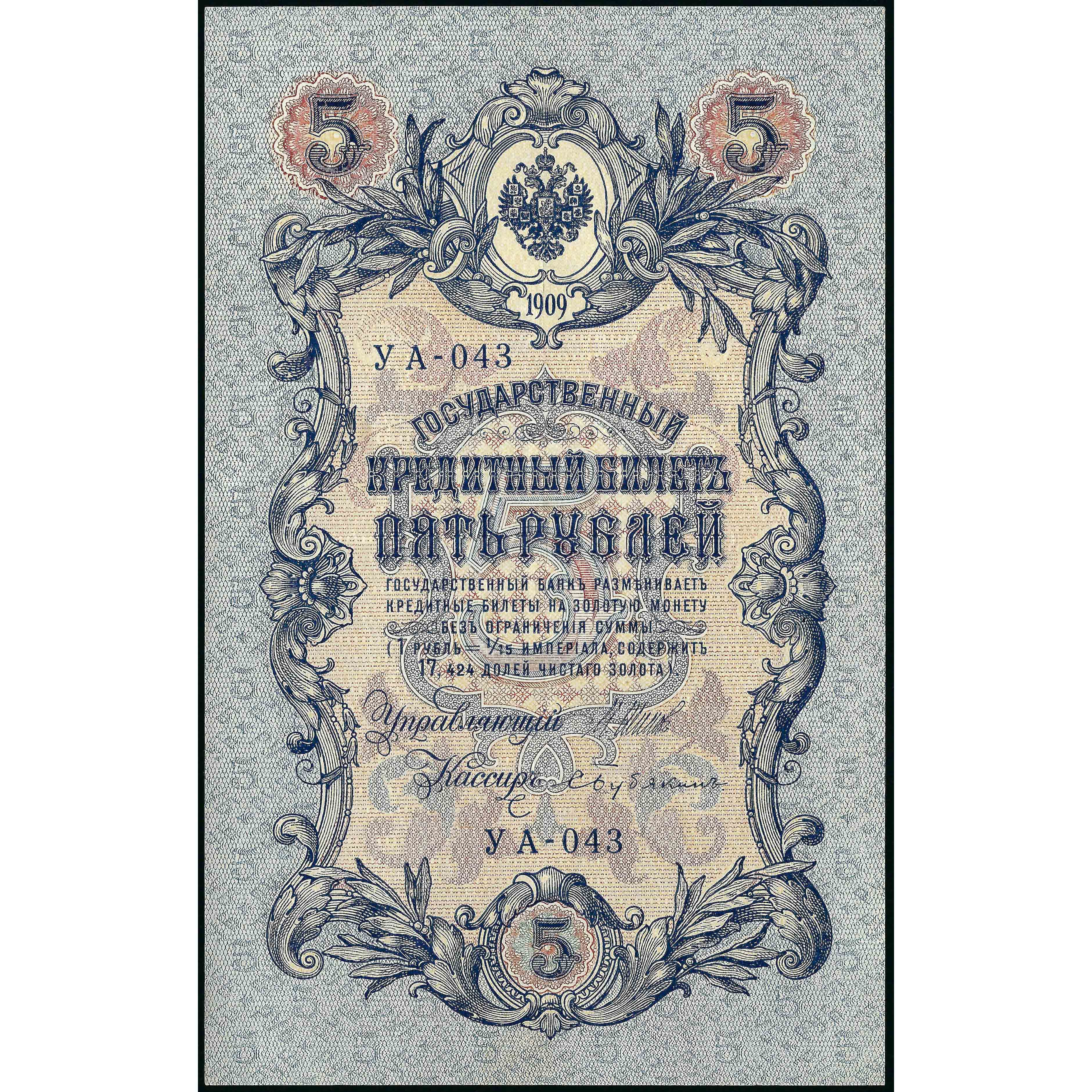 5 Rubles, Russia, 1909 (1917), sign. Shipov / Bubiakin (AU)