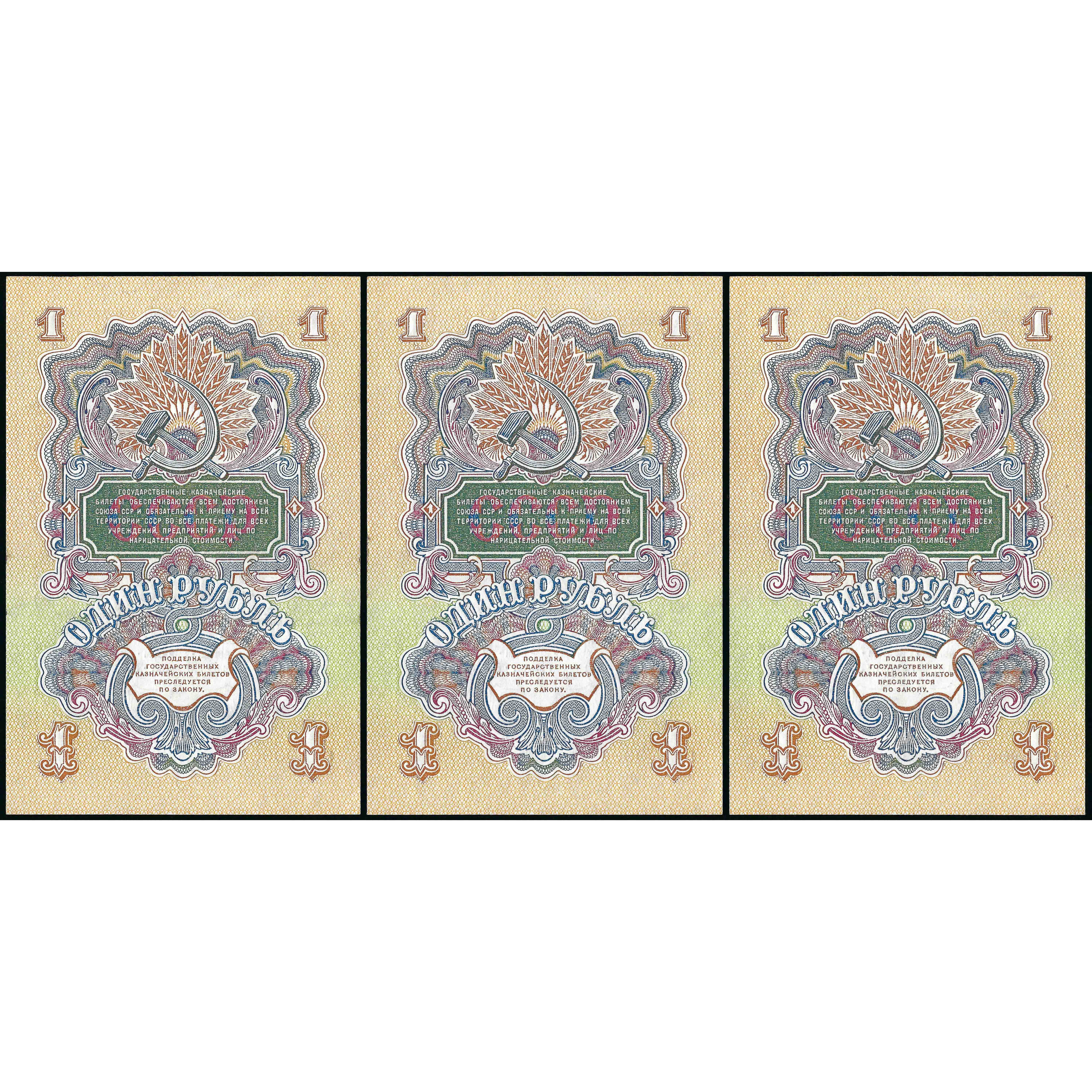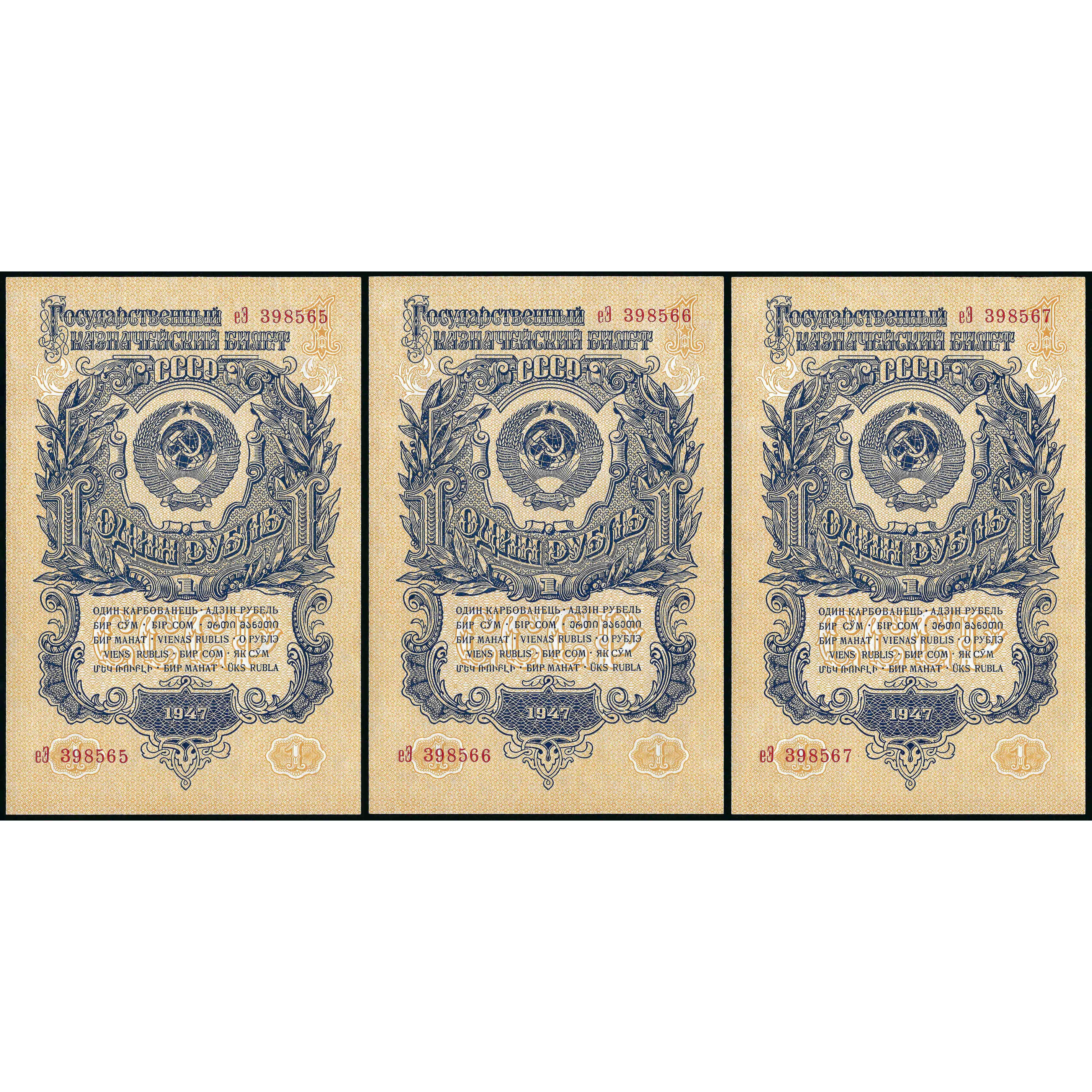 A set of sequential banknotes 1 Ruble, Russia (USSR), 1947 (1957) (AU), Pick 217