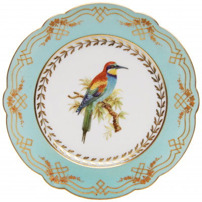 Porcelāna kafijas servīze ar mājputnu attēlie...