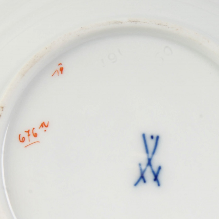 Марка немецкого фарфора, первого в Европе фарфорового завода - два скрещенных меча синего цвета - один из самых престижных логотипов среди поклонников настоящей роскоши, исключительно узнаваемый и запоминающийся знак. Он наносился кобальтом на еще сырой бисквит, который затем покрывался глазурью и поступал на обжиг.