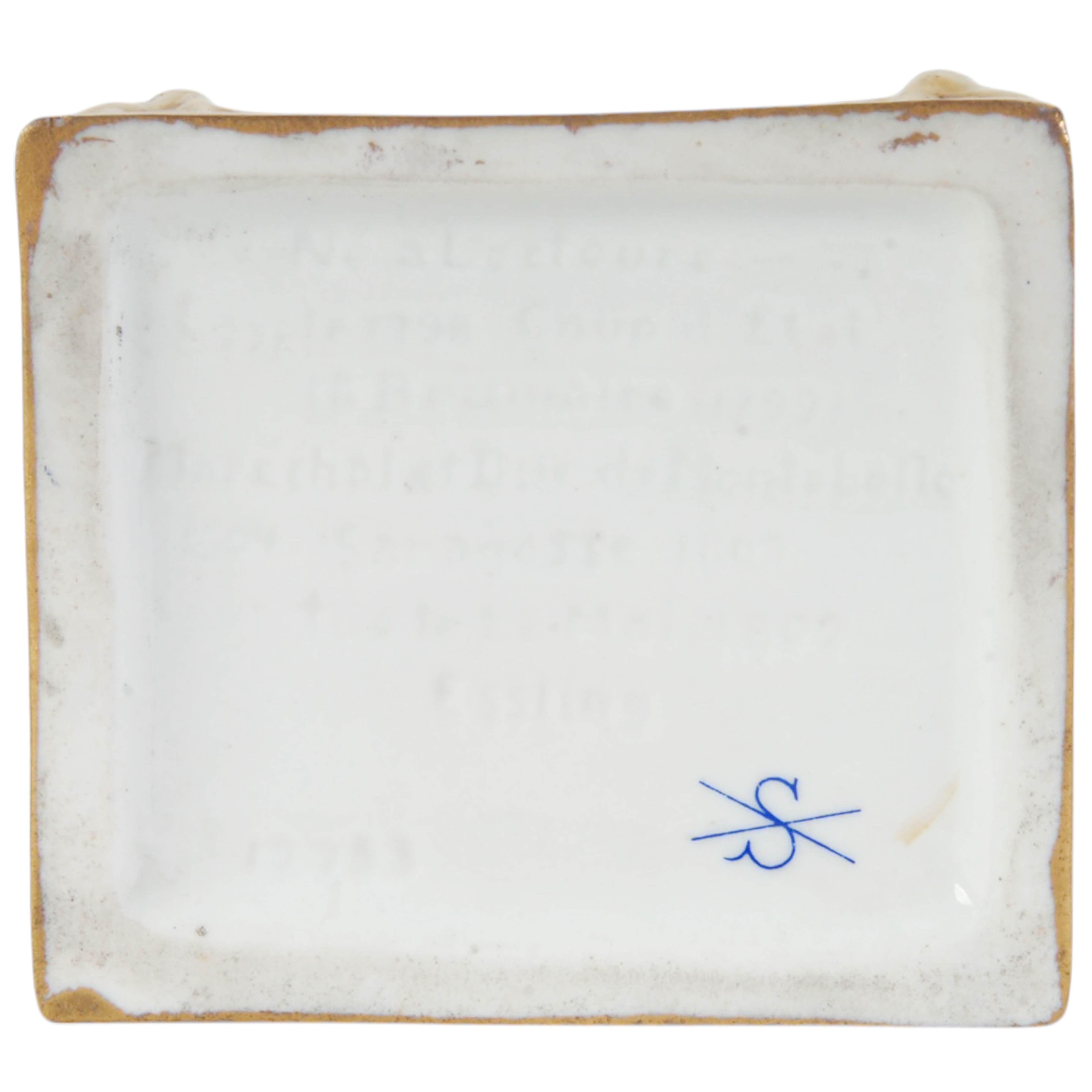The factory was founded in 1835 by Ludwig Oels. The business started as workshop decorating pipe bowls and stems. Oels however was not able to obtain a licence for his business from a local ruler. Lack of the license probably made harder supplying the workshop with firewood. In 1839 Oels had to sell the business to Daniel Kämpfe and Friedmann Greiner. New owners were finally granted the license but supply of firewood was still scarce. In 1844 Porzellanmanufaktur Kämpfe & Greiner was sold to Dressel and Johann Friedrich Andreas Kister. Dressel and Kister at last got the concession allowing them to supply the business with firewood. They started to produce porcelain figurines. Since 1863 the proprietor of the factory was Johann Kister's son, August Wilhelm Fridolin Kister. The Kister company had sample stores in Barcelona, London, Lisbon, Paris and Berlin. Renowned artists and modelers worked for Kister. among them were prof. Reinhard Möller, prof. Otto Poertzel, Felix Zeh and Carl Fuchs. Porzellanmanufaktur A.W.F. Kister was in 1905 transformed into a private liability company (G.m.b.H.). In 1920 it was bought by Baron von Schilling but name of the company remained unchanged till 1962 when it was put under the state supervision. Finally, the communist authorities of GDR (German Democratic Republic) nationalized the factory in 1972. The state owned V.E.B. Porzellanmanufaktur Scheibe-Alsbach functioned till the reunification of Germany in 1990. This year it was taken over by the Königlich privilegierte Porzellanfabrik Tettau G.m.b.H. The new owner was not interested in investing in the factory. It has kept only brands, trademarks and molds. Most of the factory buildings were demolished.