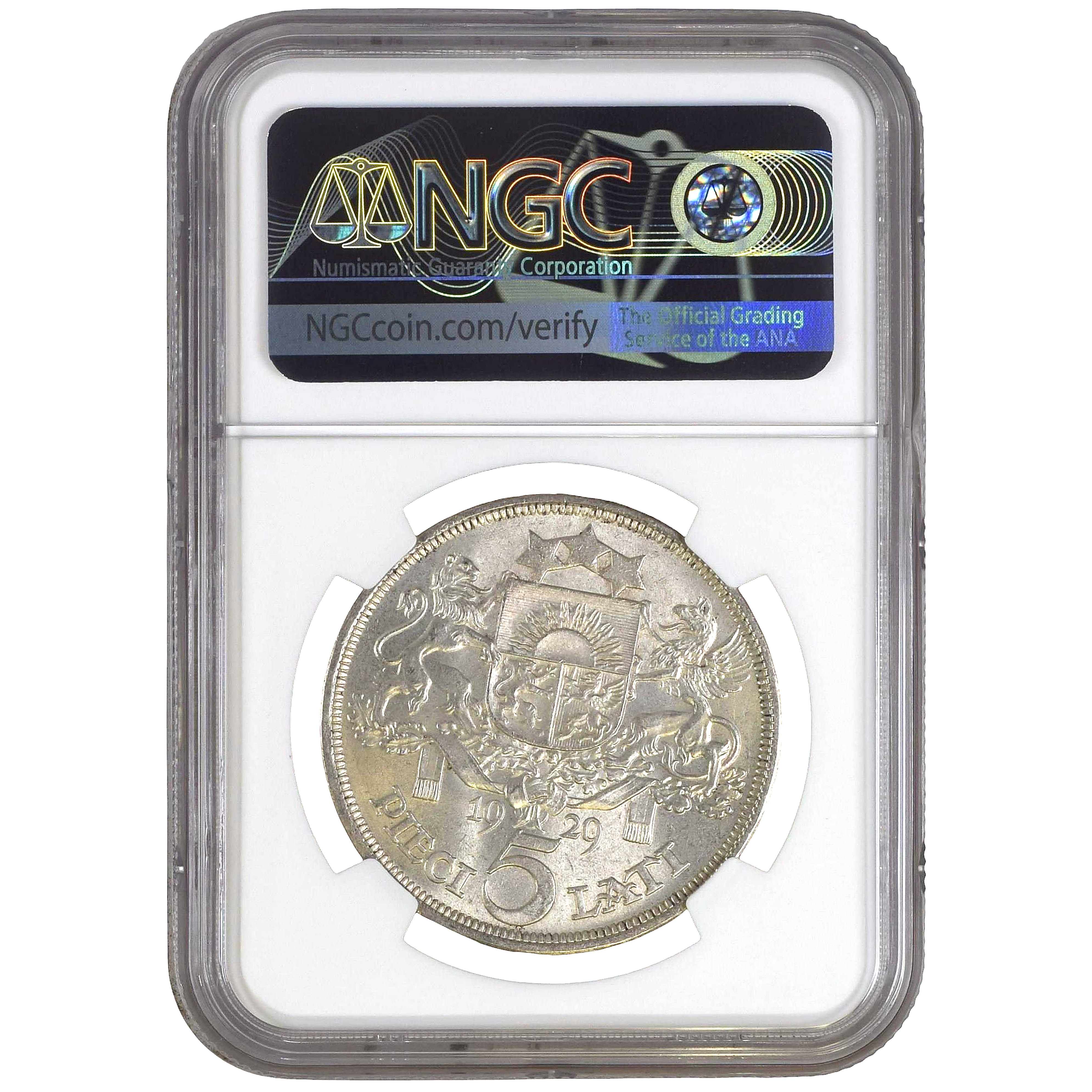 Coin in NGC slab "5 Lati 1929, Latvia, MS 63", KM 9