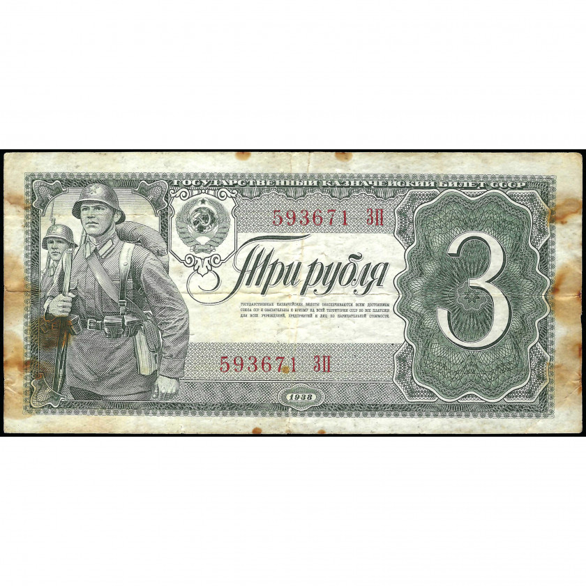 3 Rubles, USSR, 1938 (VG), Pick 214a