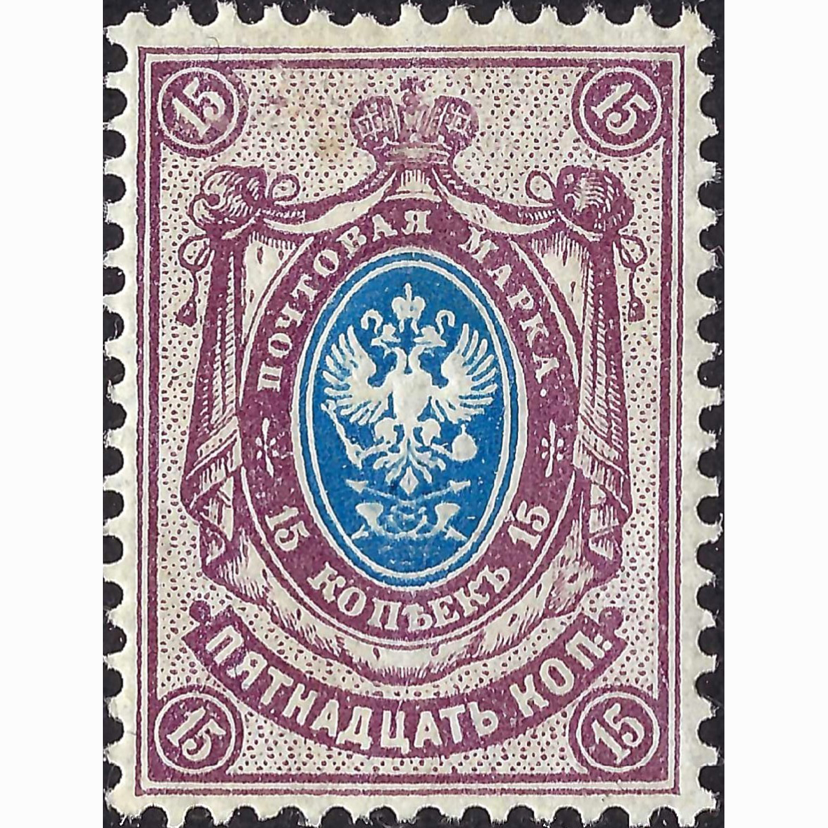(ERROR) 1908, Russian Empire, 15k, Solovyov #72 / Michel #71A, Typographed, UnWmk, P14:14½