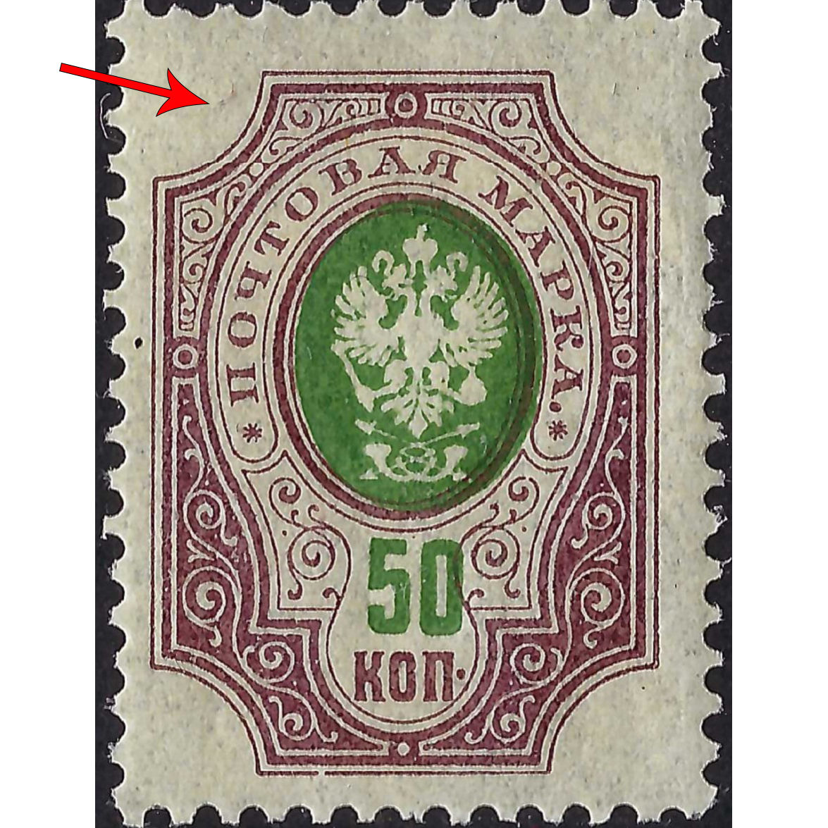(ERROR) 1908, Russian Empire, 50k, Solovyov #76 / Michel #75A, Typographed, UnWmk, P14:14½