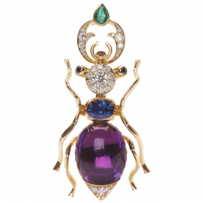 Золотая брошь-кулон с изумрудами и бриллианта...