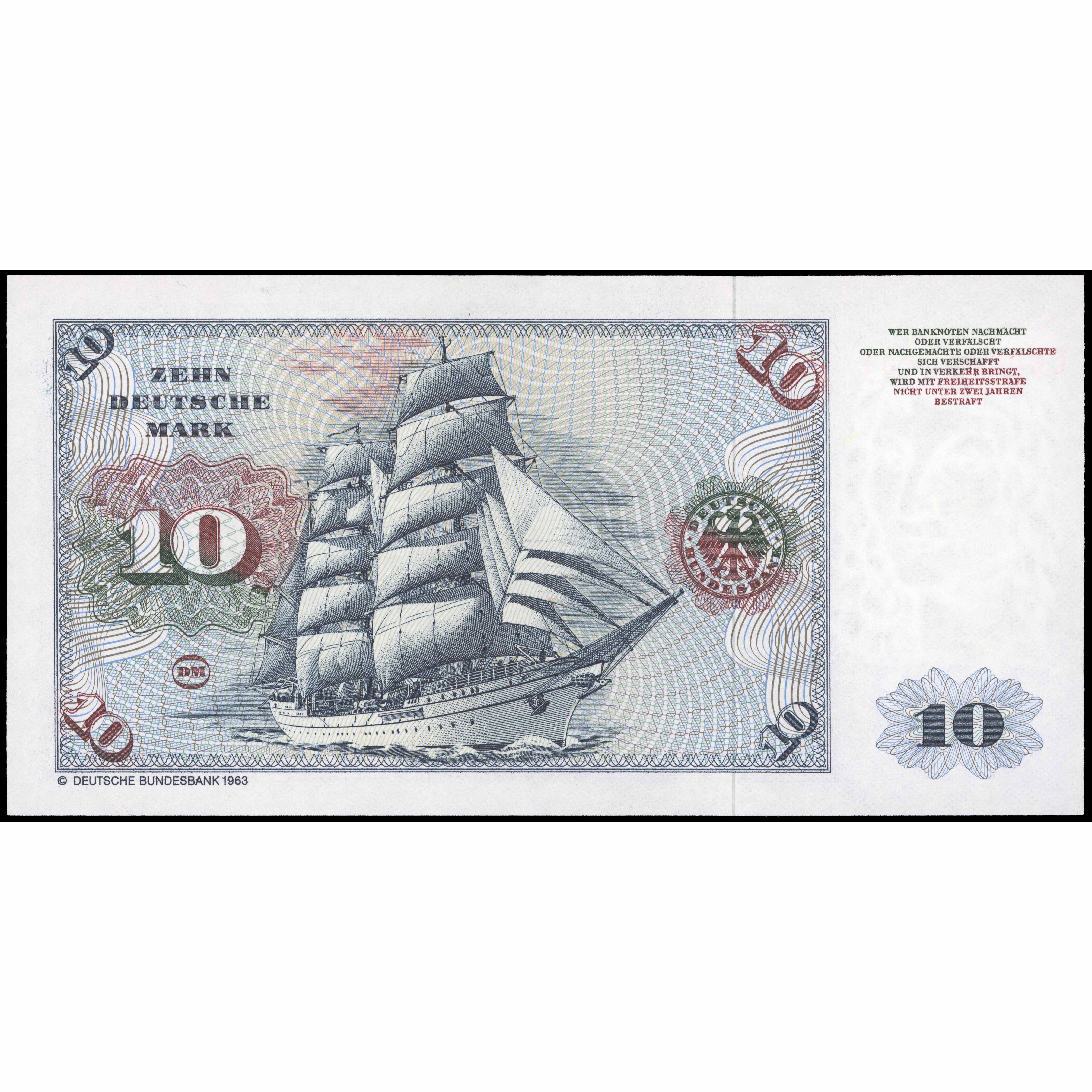 10 Vācu Markas, Vācija (Federatīvā Republika), 1980 (AU), Pick 31d