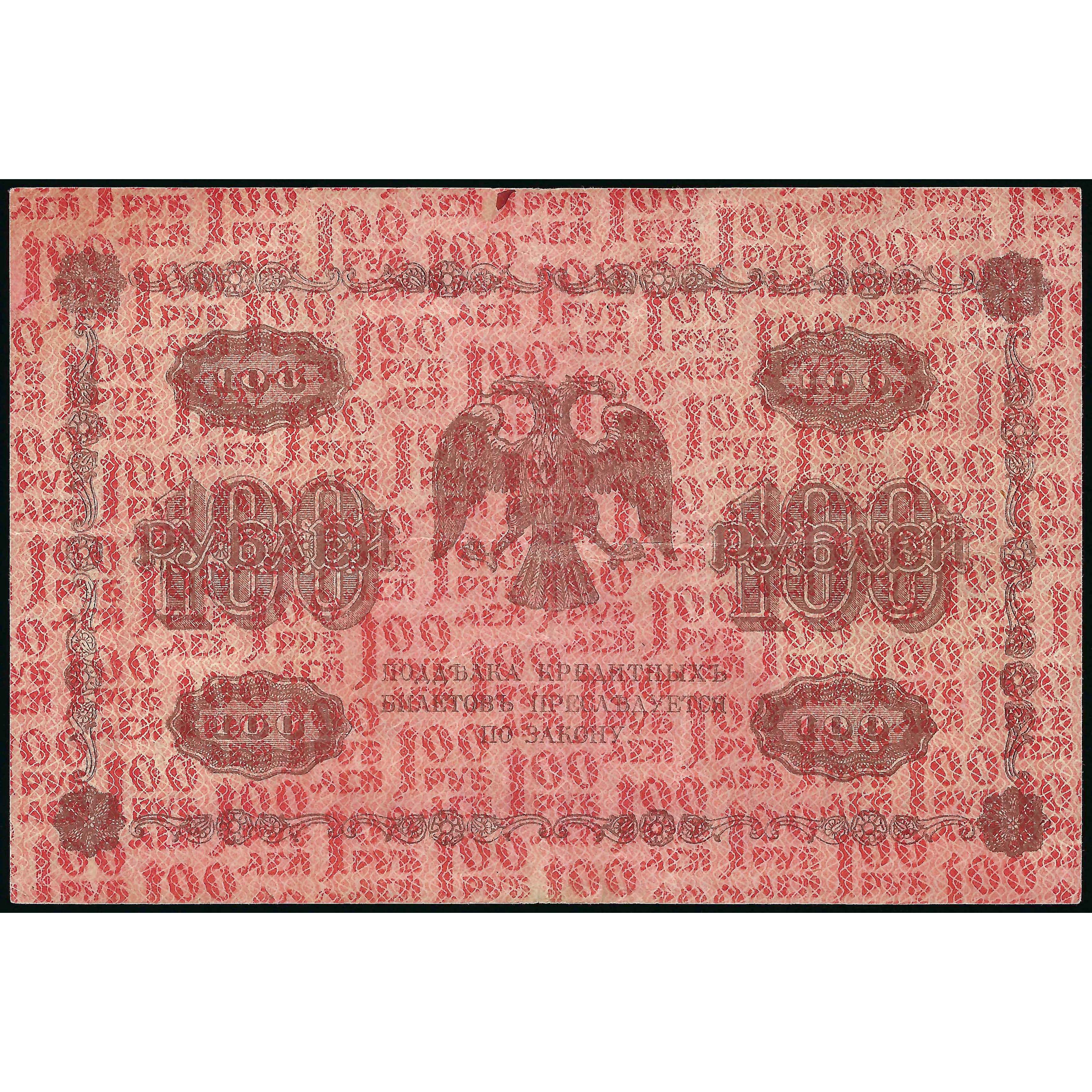 100 Rubļi, Krievija, 1918, paraksti G. Pjatakovs / P. Bariševs (F), Pick 92