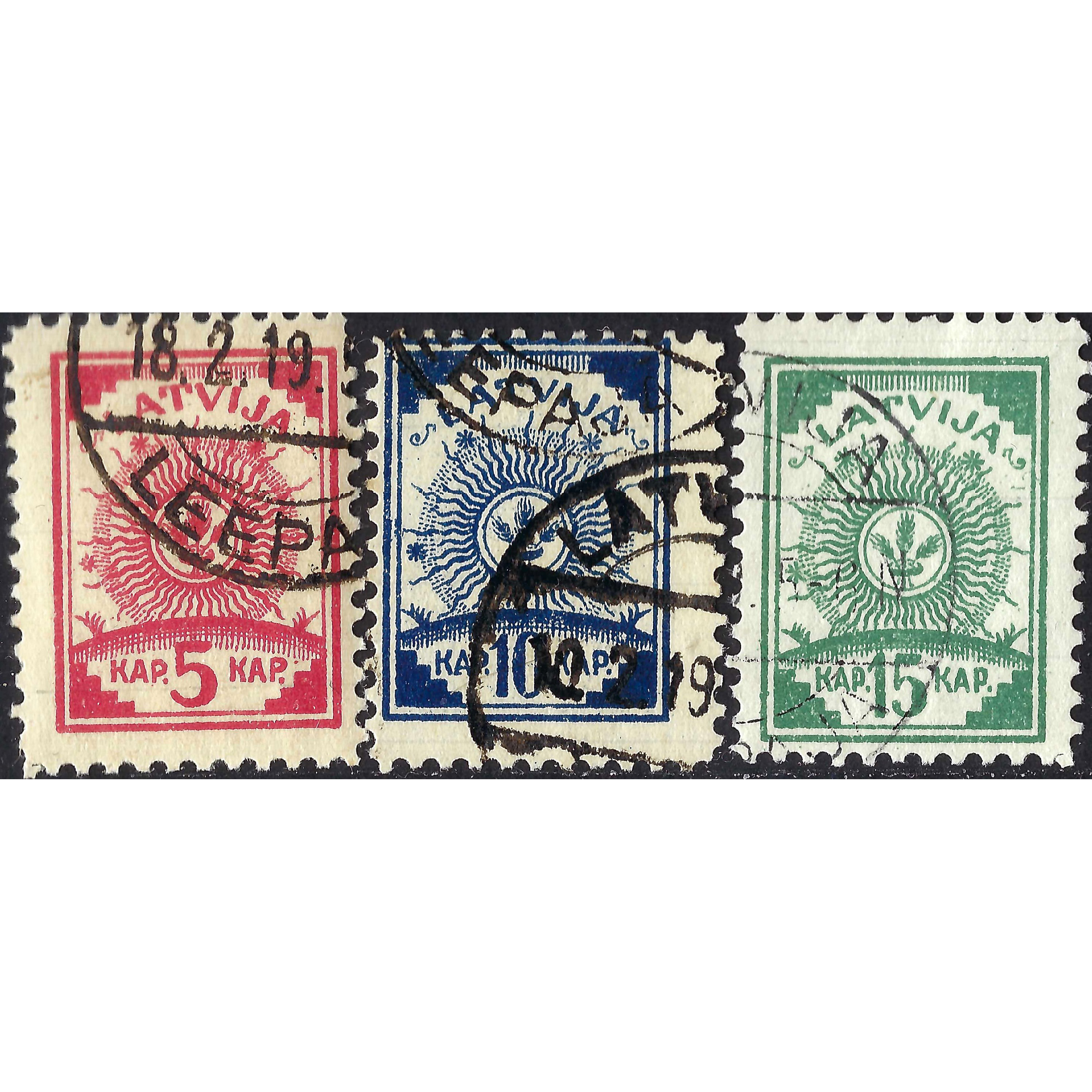 1919, Latvia, 5k-15k, Solovjovs #2A-#4A / Michel #3A-#5A, Litogrāfija, Bez zīmoga