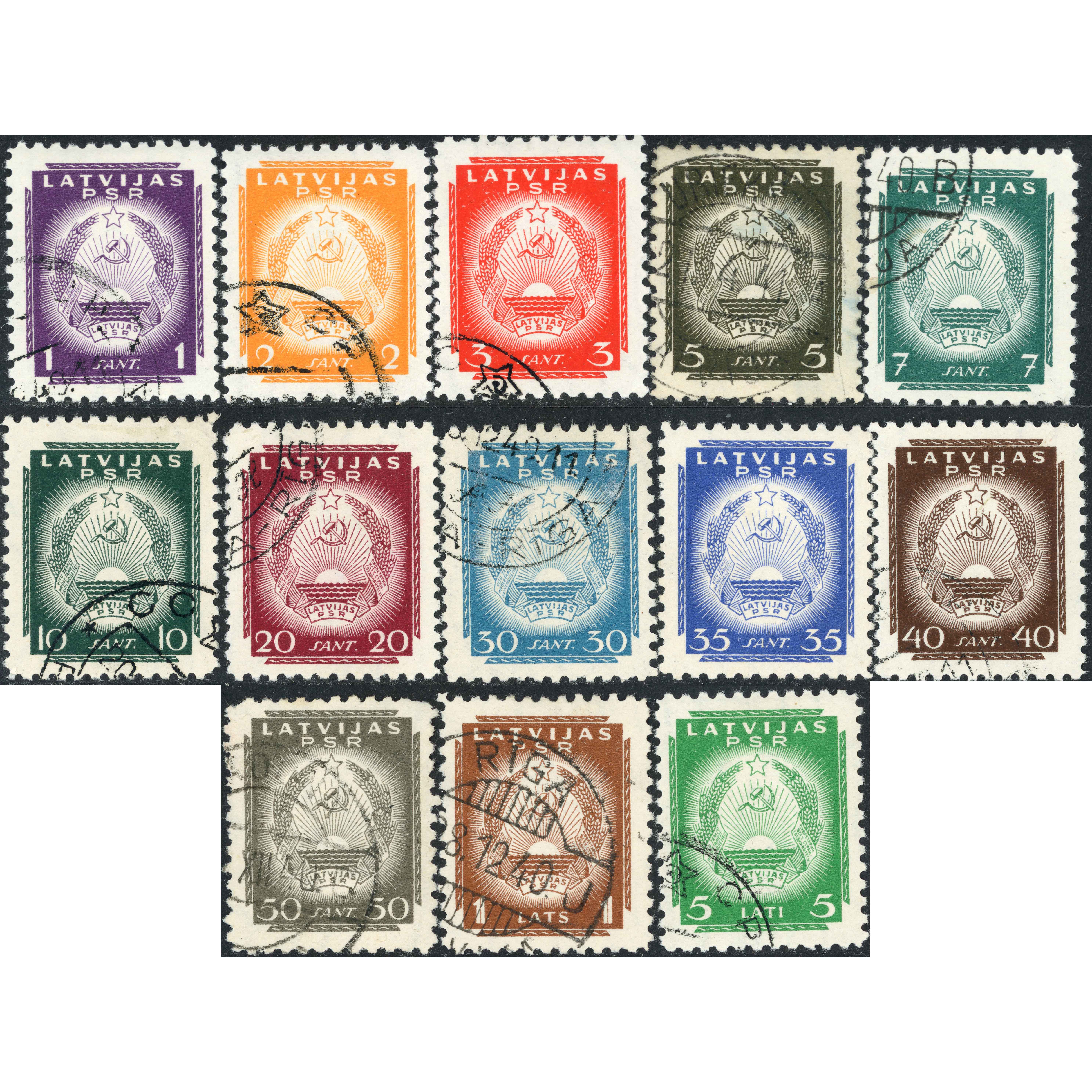 1941, Latvia, 1s-5L, Solovjovs #1-#13 / Michel #292-#304, Litogrāfija, Ar zīmogu, P10