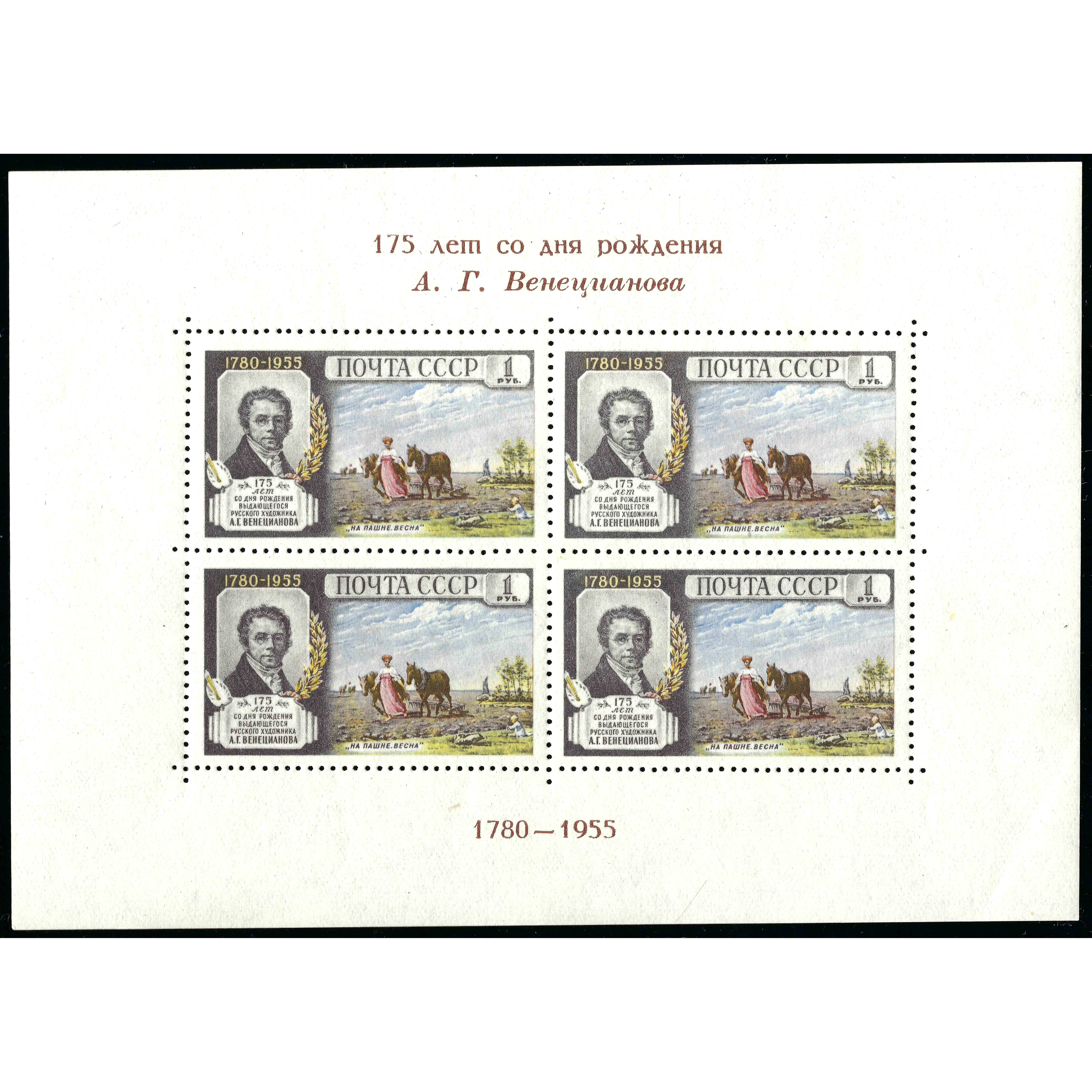 1955, PSRS, 1Rub, Solovjovs #1842 / Michel Block 14, Fototipija, Bez zīmoga, P12.5:12