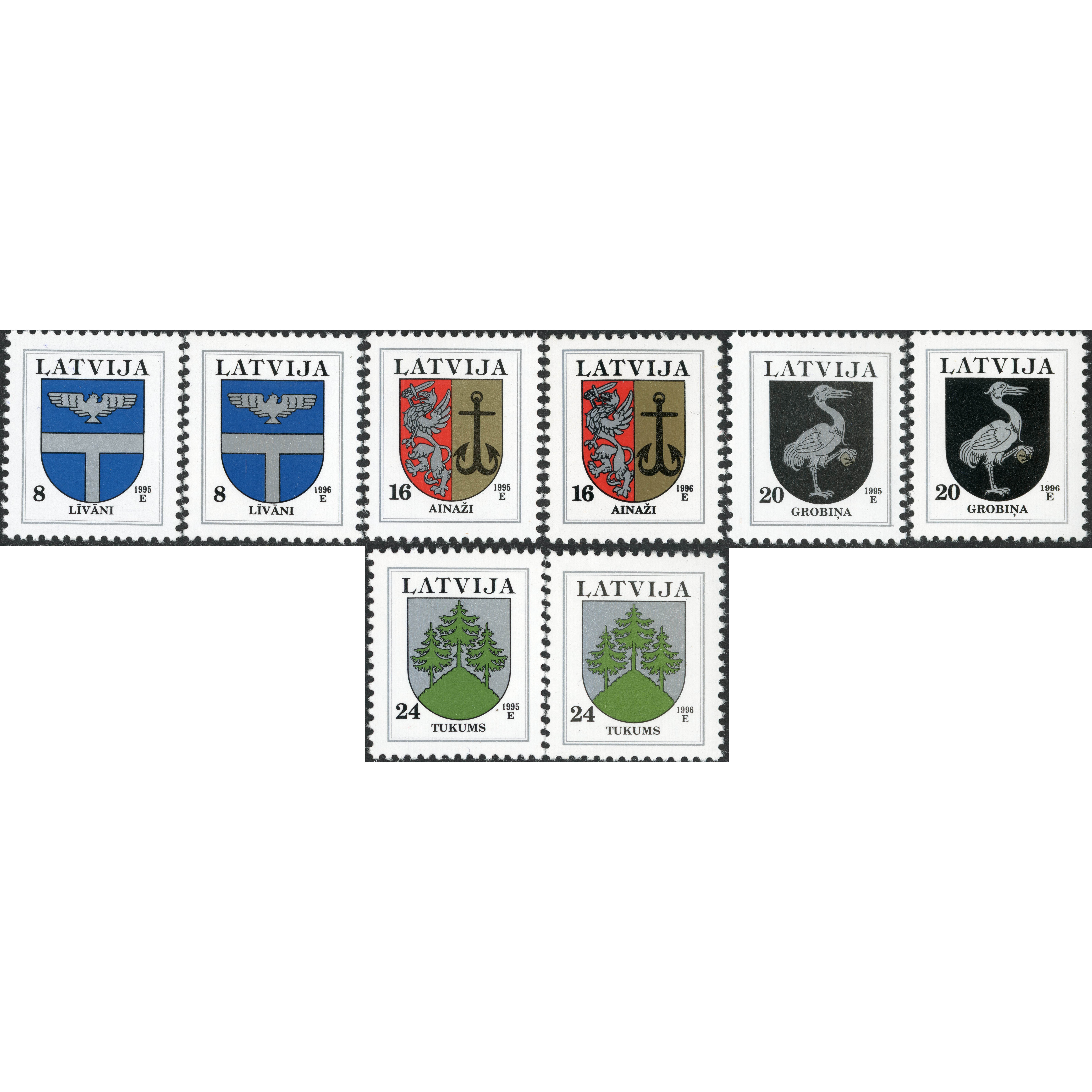 1995, Latvia, 8s-24s, Michel #399I-#402II, Ofset, Bez zīmoga, P13:12.5