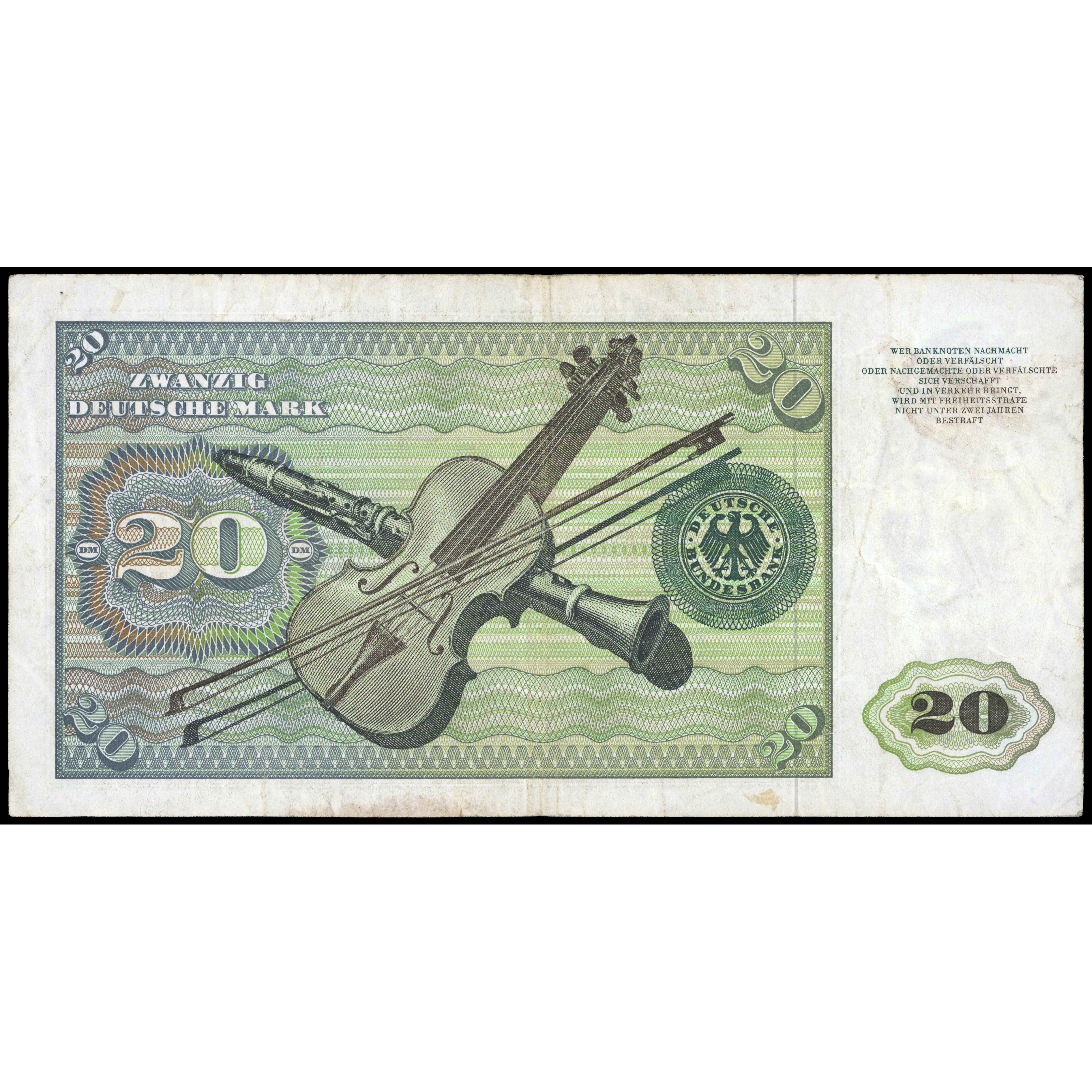 20 Vācu Markas, Vācija (Federatīvā Republika), 1970 (VF), Pick 32a