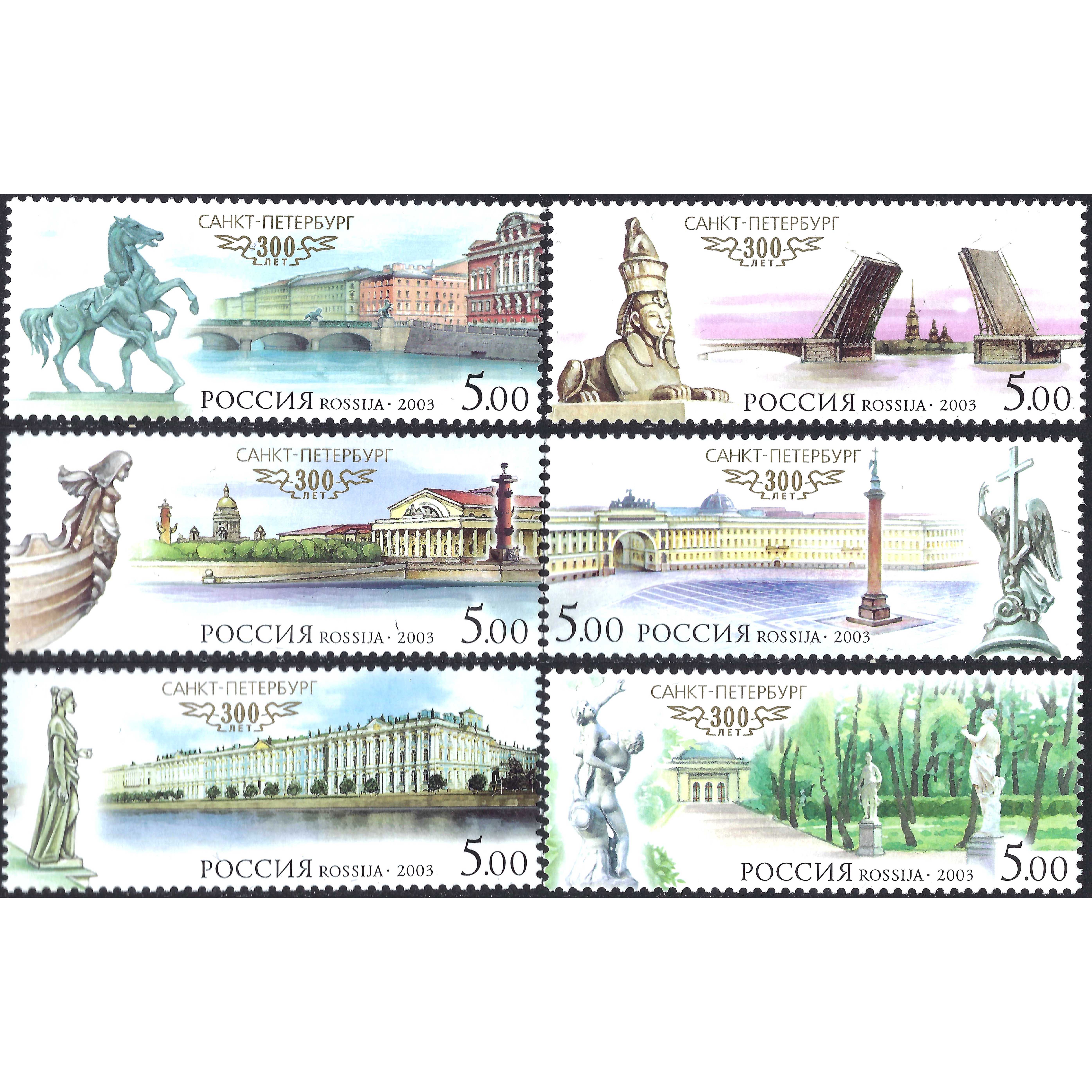 2003, Krievija, 5Rub, Zagorsky #849-#854 / Michel #1079-#1084, Ofset, Bez zīmoga, P12.5:12