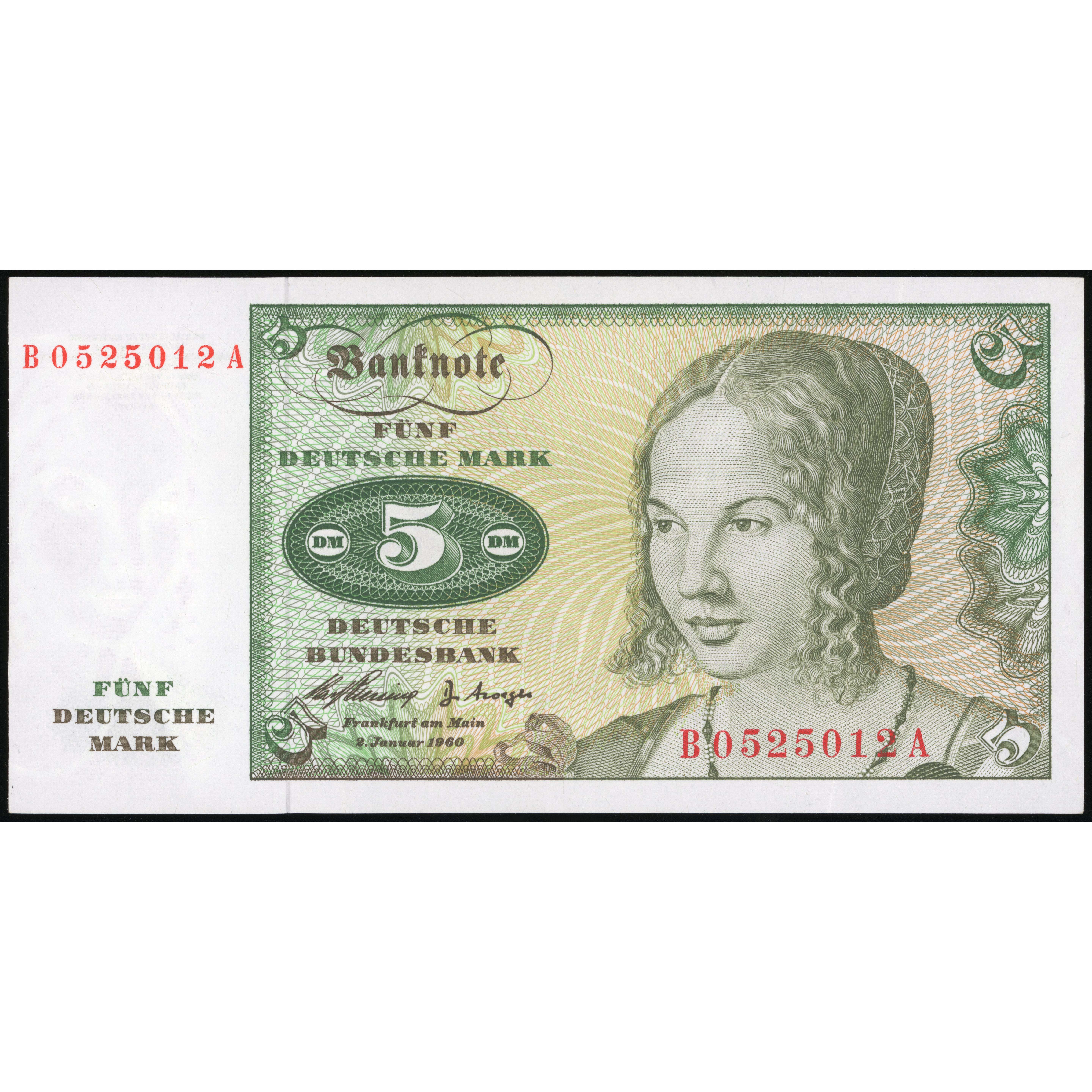5 Vācu Markas, Vācija (Federatīvā Republika), 1960 (AU), Pick 18a