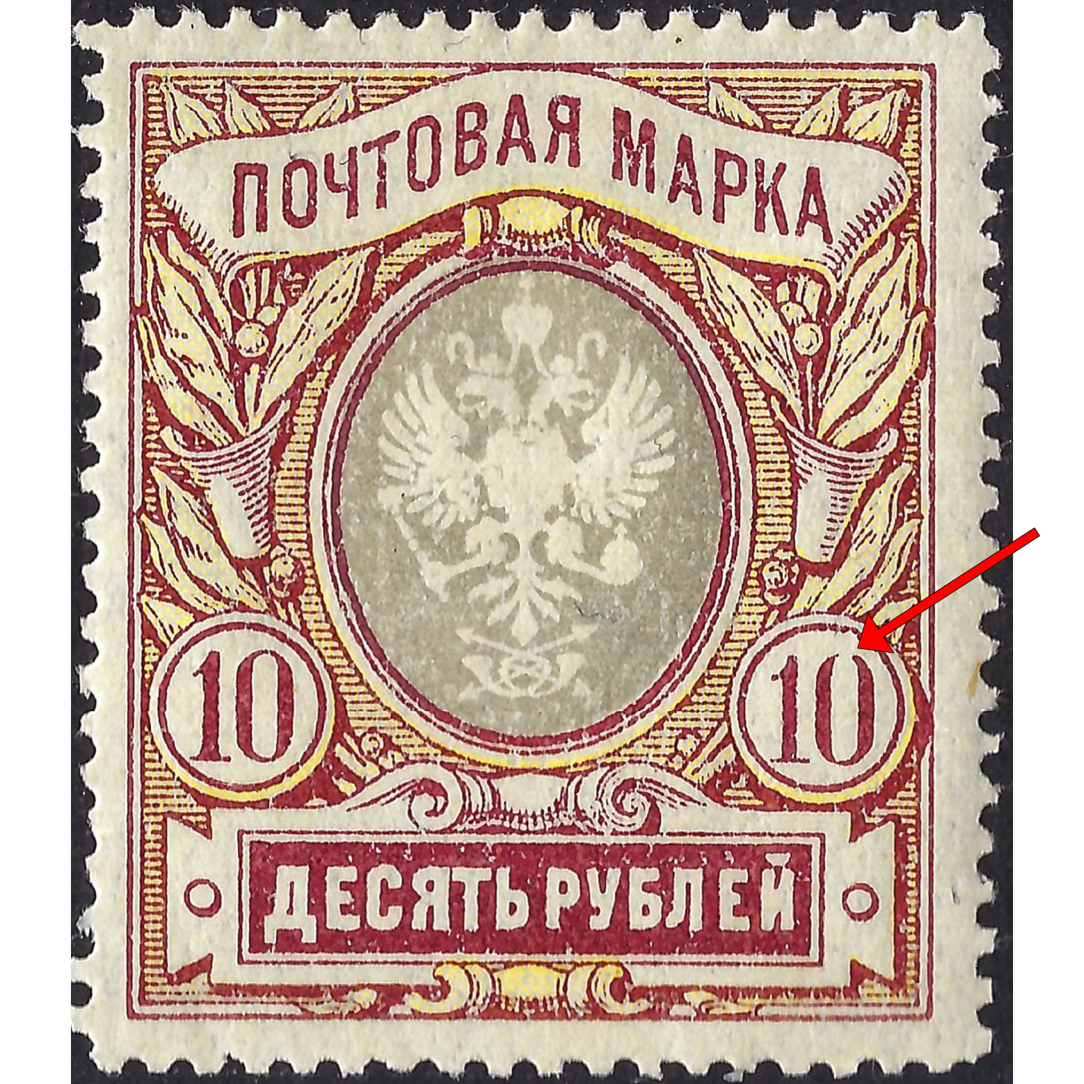 (KļŪDA) 1915, Krievijas Impērija, 10Rub, Solovjovs #106 / Michel #81A, Tipogrāfija, Bez zīmoga, P13.5