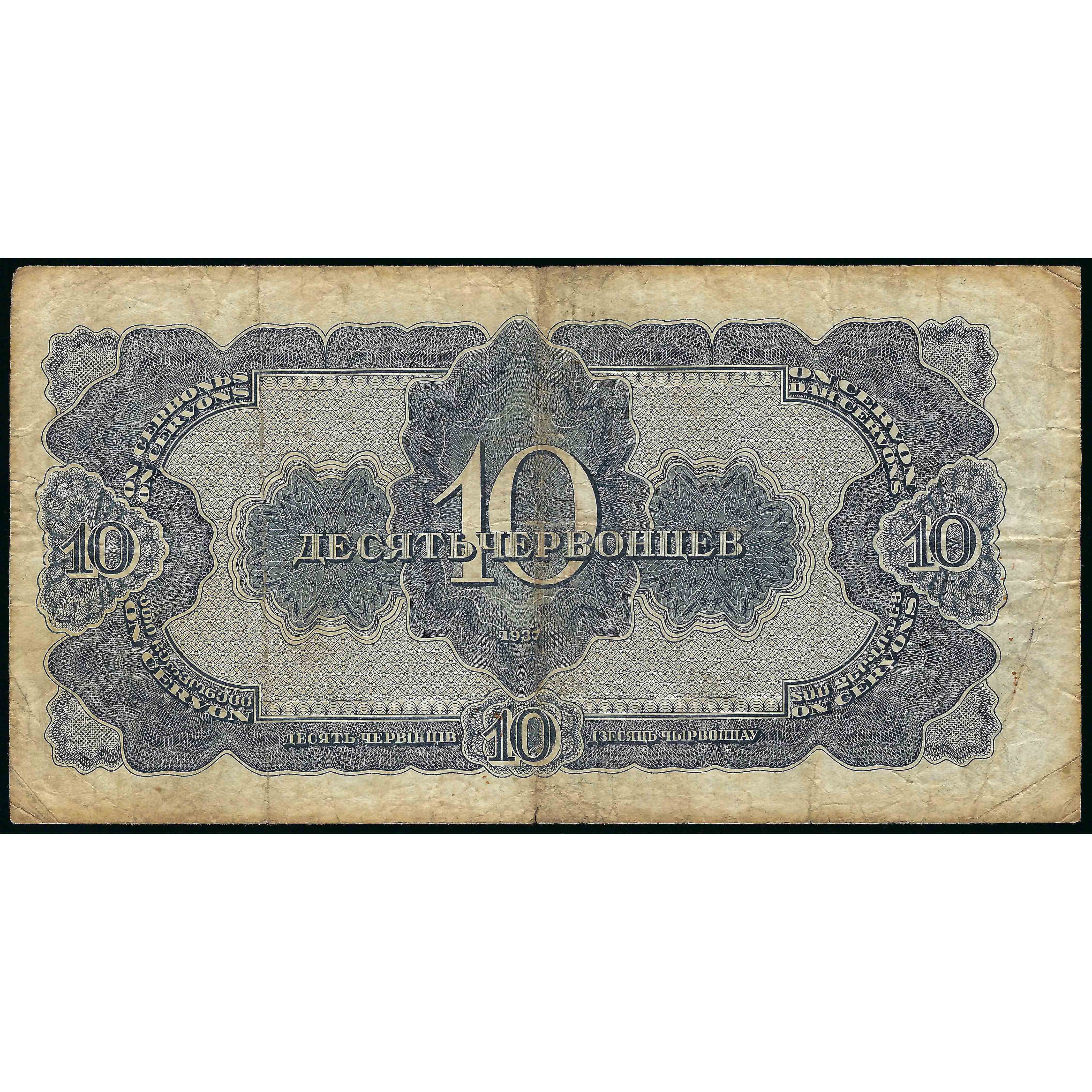 10 Červoncev (100 Rubļi), PSRS, 1937 (F), Pick 205a