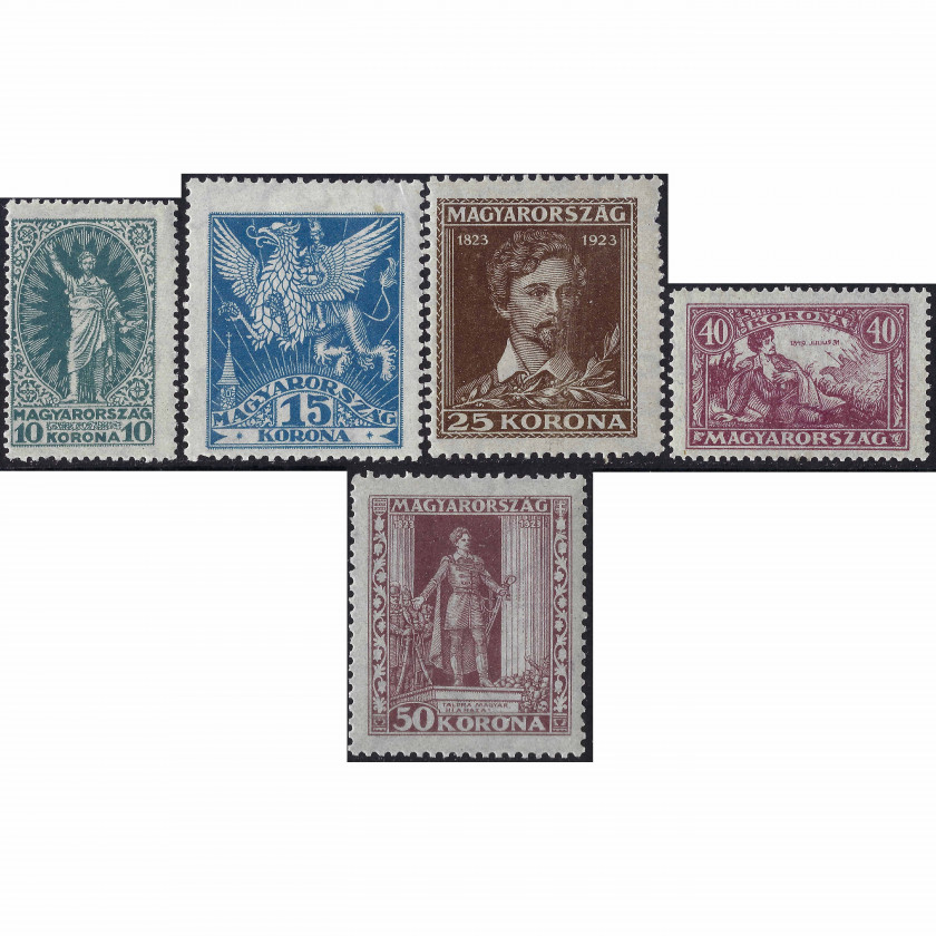 1923, Ungārija, 10Kr-50Kr, Michel #369-#373, Ofset, Ar zīmogu, P12-14, Šāndors Petēfi