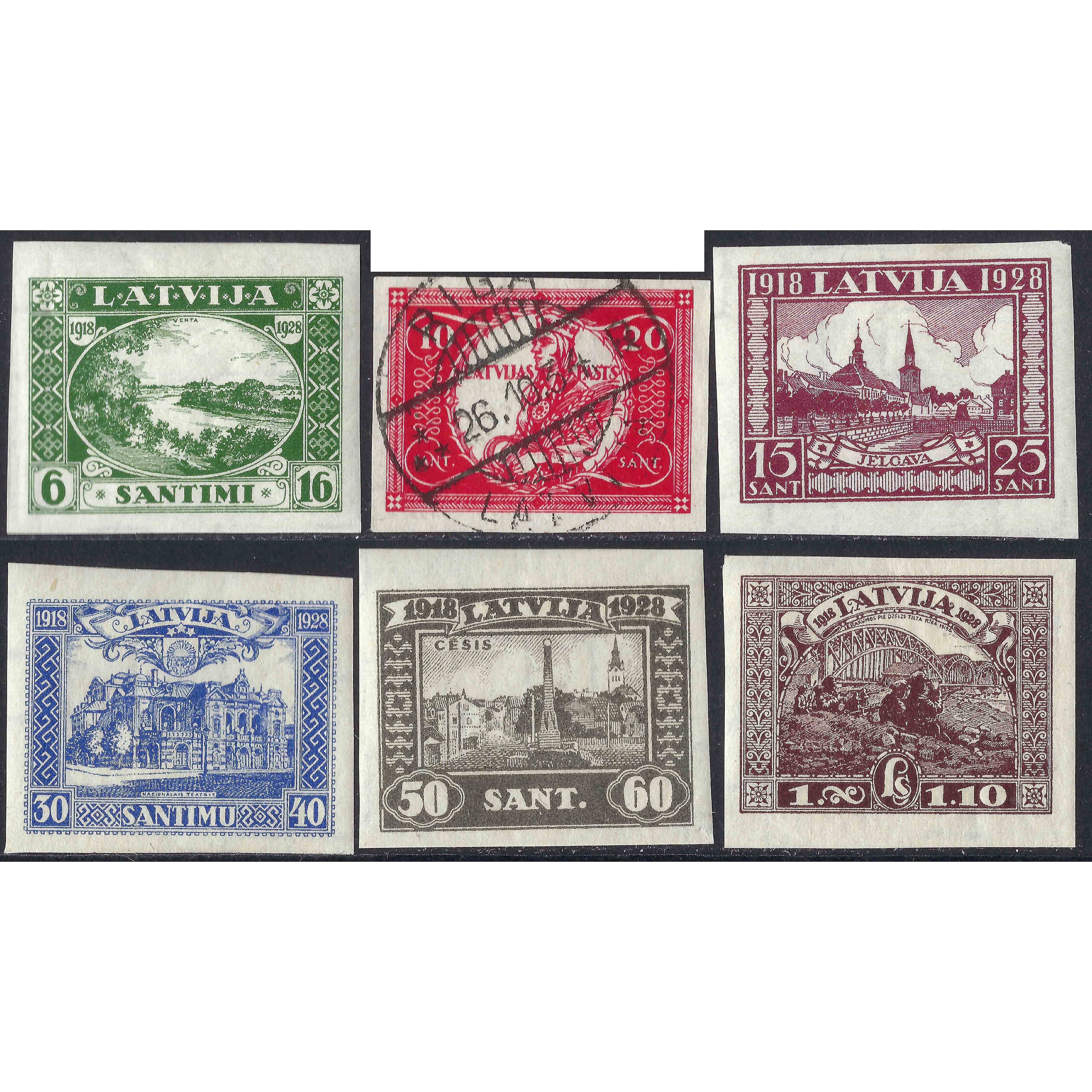 1928, Latvia, 6+16s-1+1.10L, Solovjovs #145A-#150A, Litogrāfija, Ar zīmogu