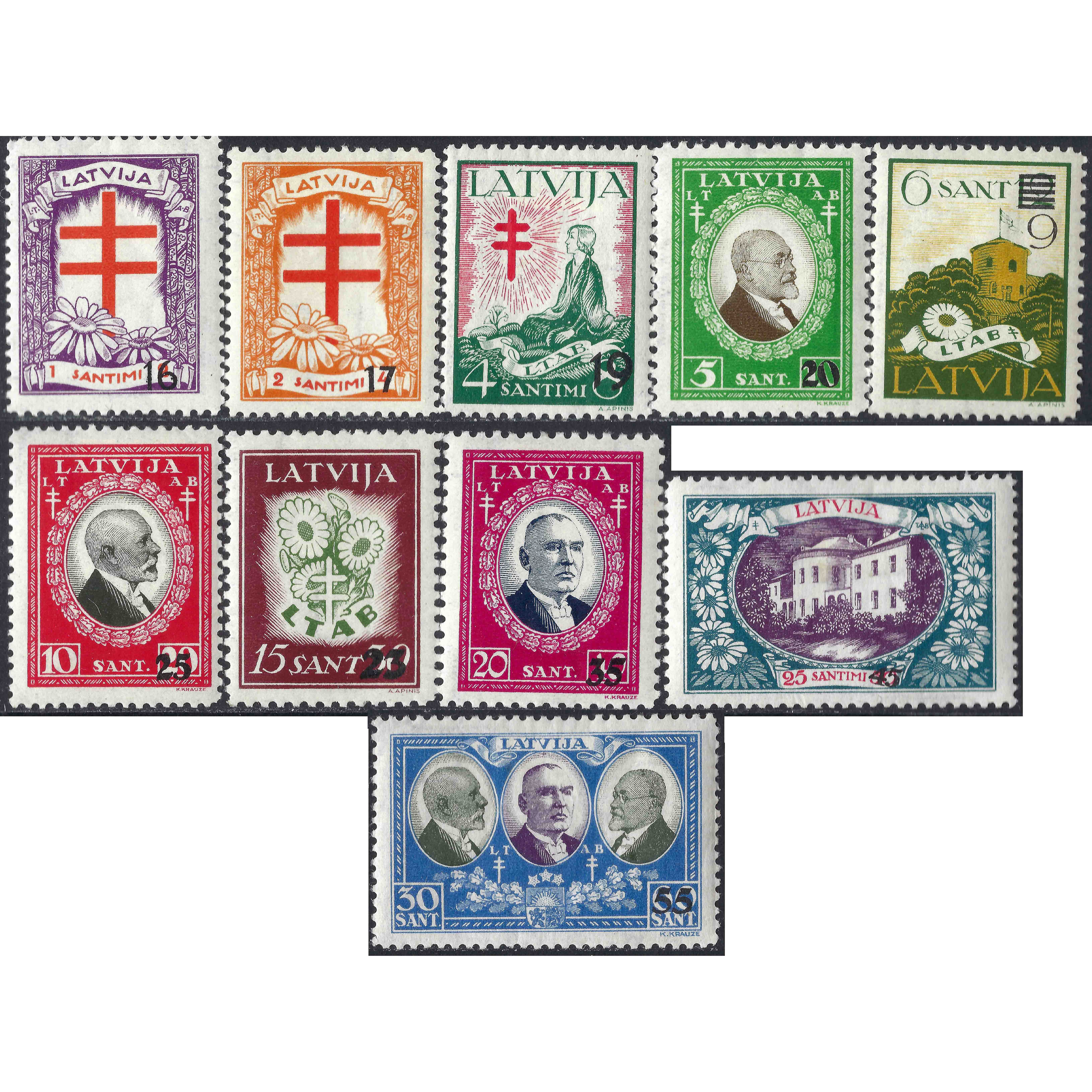 1931, Latvia, 1(16/2s)-30(55/60s), Solovjovs #174-#183, Litogrāfija, Ar zīmogu, P10-11½