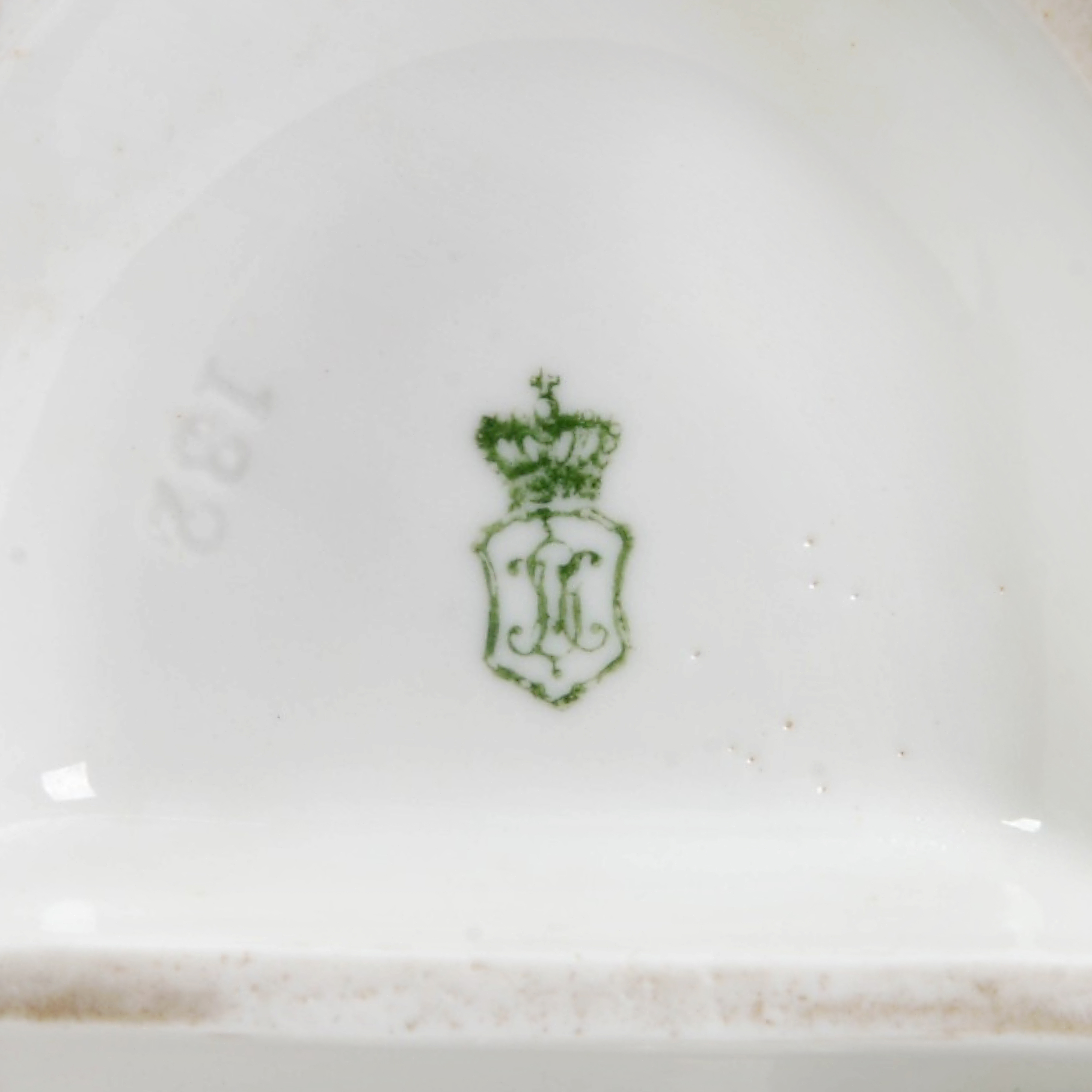 Materiāli: apakšglazūras rokas gleznojums, porcelāns, zeltījums