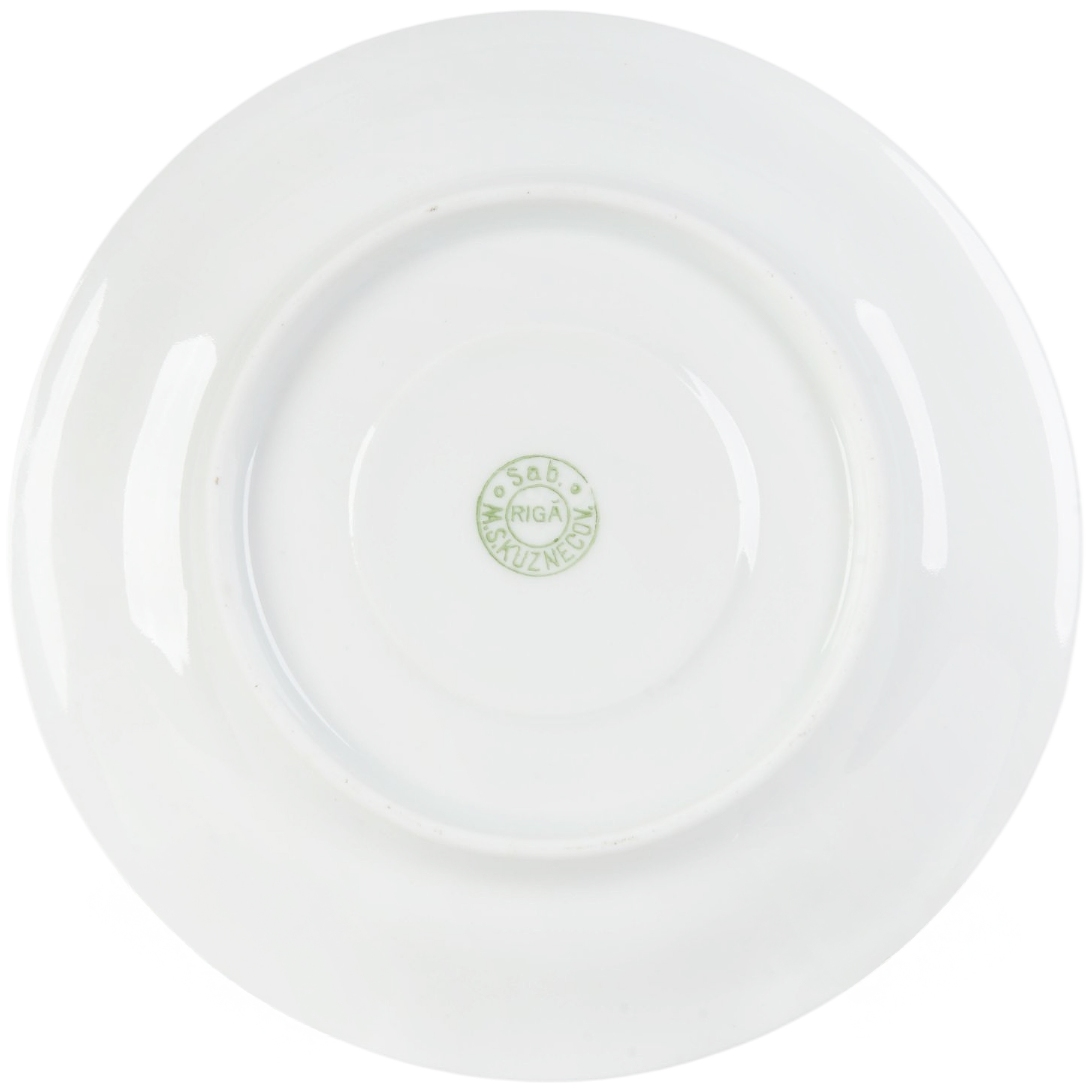 Kuznetsov Porcelain Factory in Riga was founded in 1841, but official establishment date of the company in Russia was considered in 1812, when Kuznetsov established his first company in Gzhel (Гжель) near Moscow. At Riga`s factory produced halffaience, but from 1851 porcelain products. In 1864 after Sidor Kuznetsov death management of the company's was taken over by his son Matvey Kuznetsov. In 1872 Matvey Kuznetsov changed company name to M. S. Kuznetsov company. Raw materials for the Riga`s factory came from internal provinces of the Russian Empire, as well as from Germany, Holland, France, Scandinavia, coal - from England. Part of the factory product was sold on the local market and in other provinces of the Russian Empire, the rest of the production was exported to England, Holland and other countries.