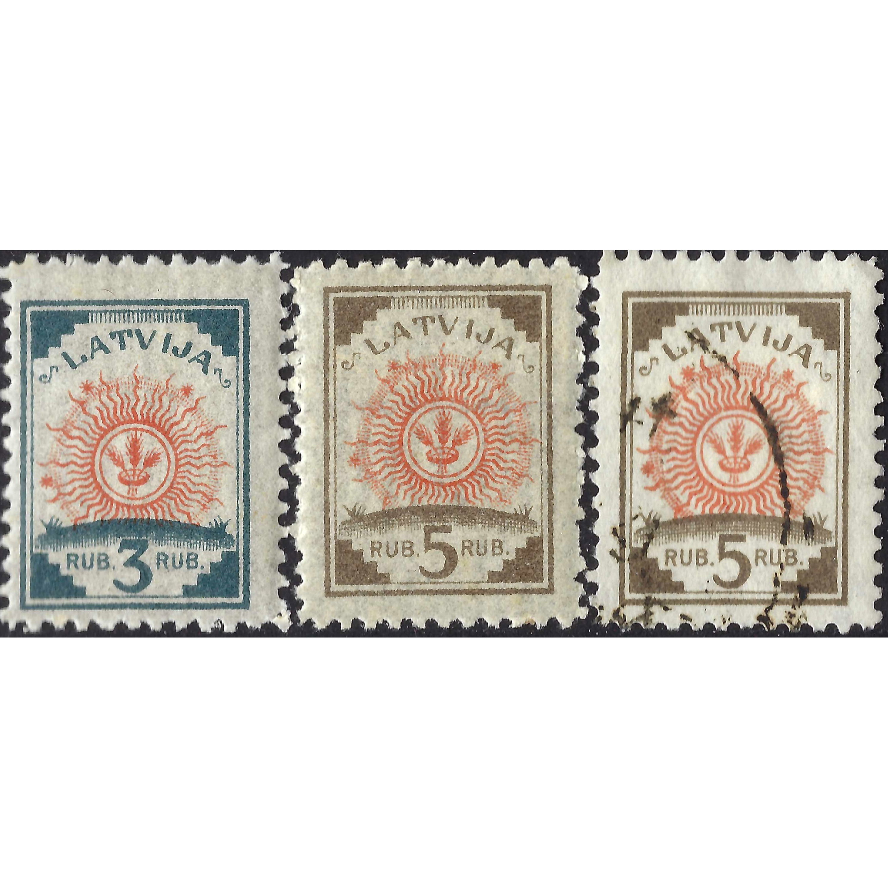 1919, Латвия, 3Rub-5Rub, Соловьев #23-#24A / Мишель #30-#31, Литография, Без ВЗ, P11.5