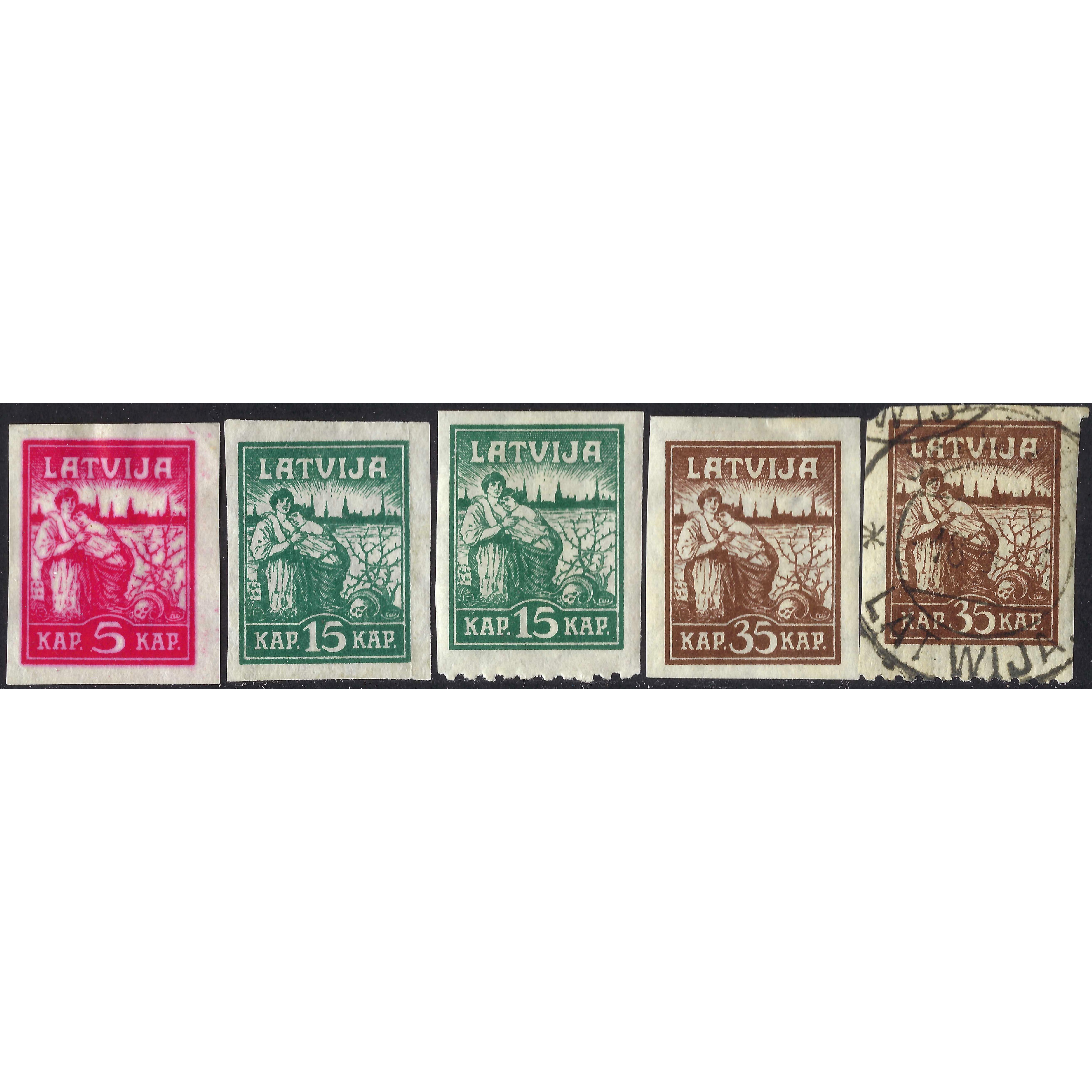1919, Латвия, 5k-35k, Соловьев #26-#28 / Мишель #25x-#27x, Литография, ВЗ