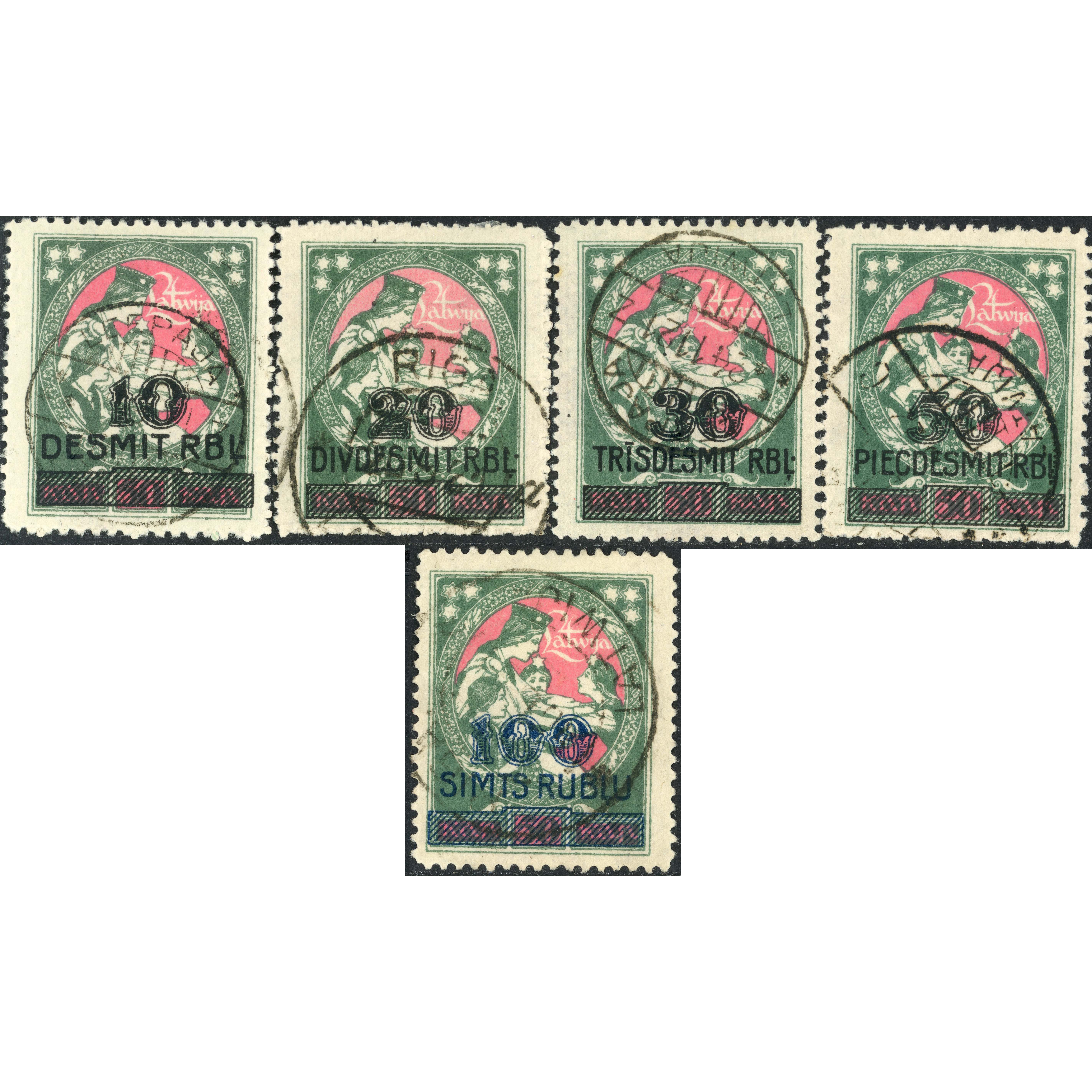 1920, Латвия, 10Rub/50k-100Rub/50k, Соловьев #63-#67 / Мишель #70-#74, Литография, Без ВЗ, P11.5