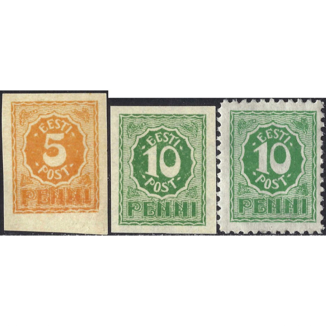 1919, Эстония, 5p-10p, Соловьев #5-#6A, Литография, P11.5, Без ВЗ