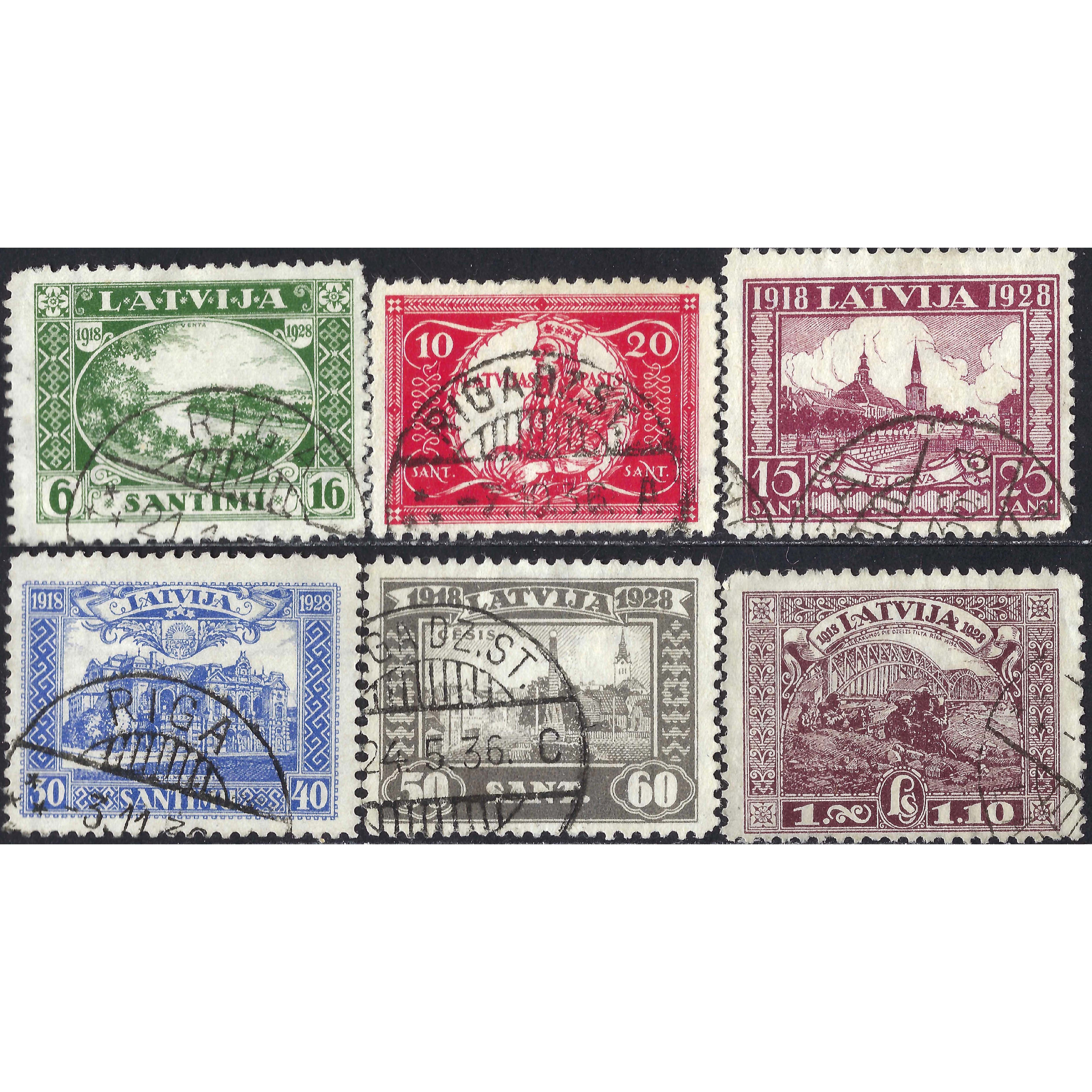 1928, Латвия, 6s-1L, Соловьев #145-#150, Литография, ВЗ, P11.5