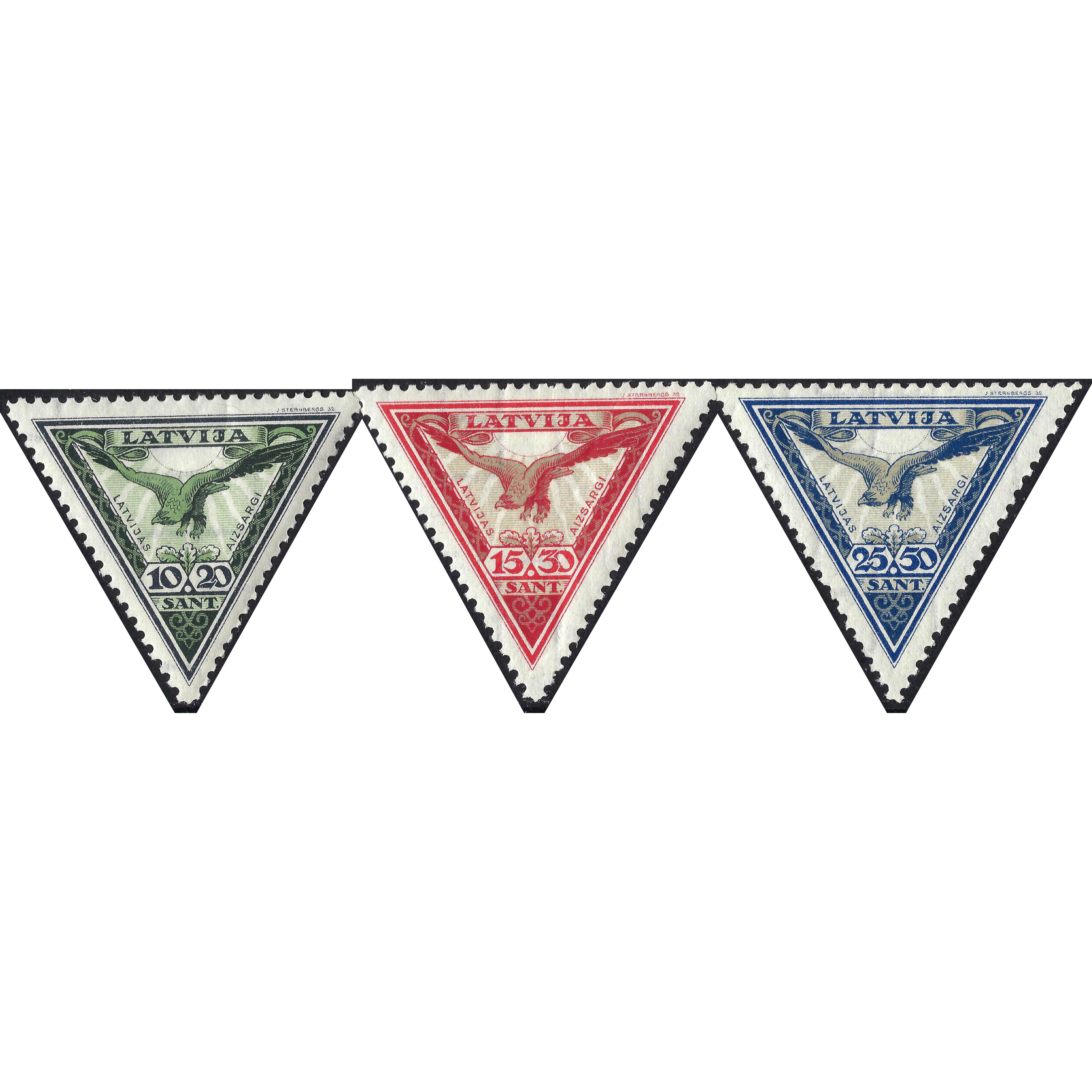 1932, Латвия, 10+20s-25+50s, Соловьев #197-#199, Литография, ВЗ, P11, Авиапочта