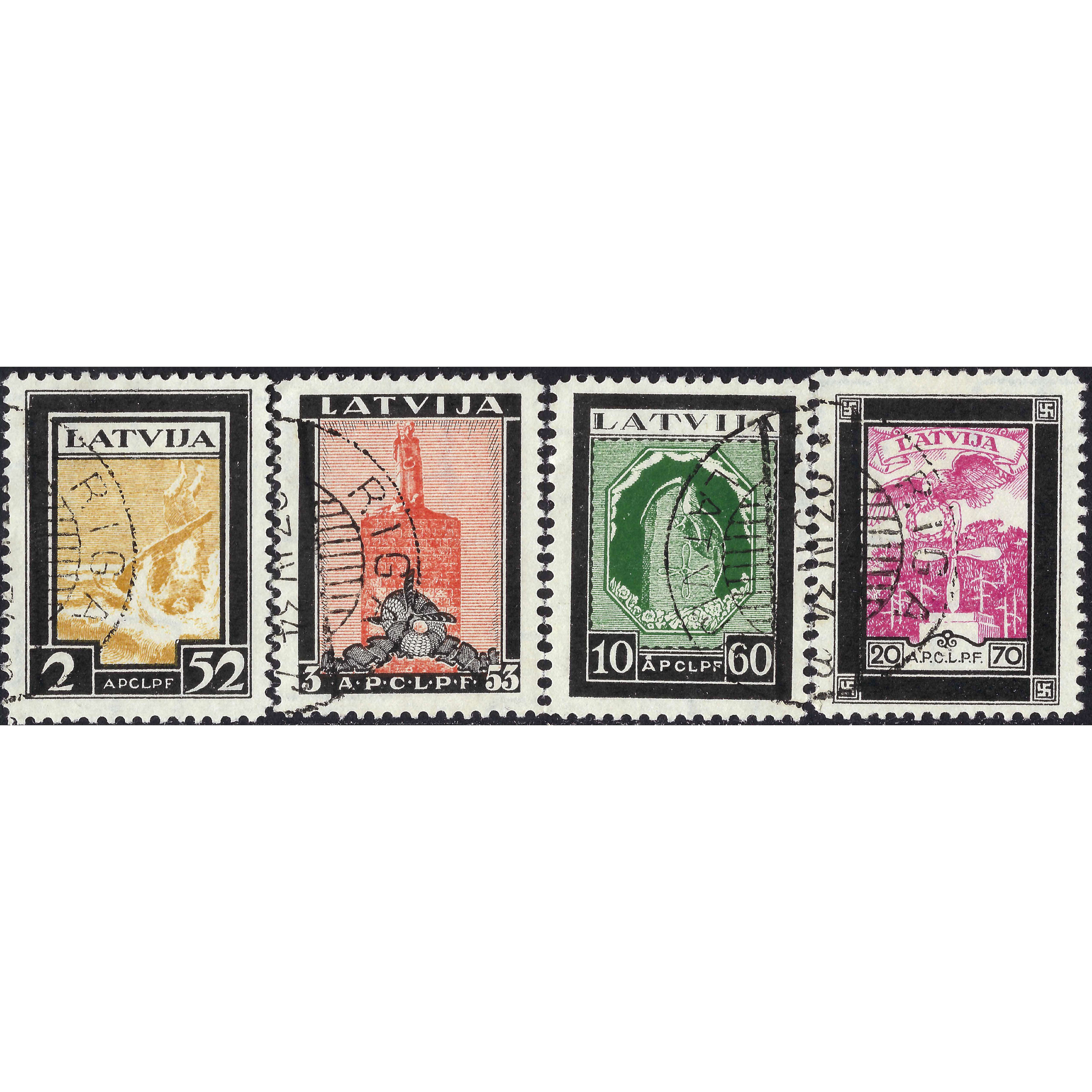 1933, Латвия, 2+52s-20+70s, Соловьев #209-#212, Литография, ВЗ, P11, Авиапочта