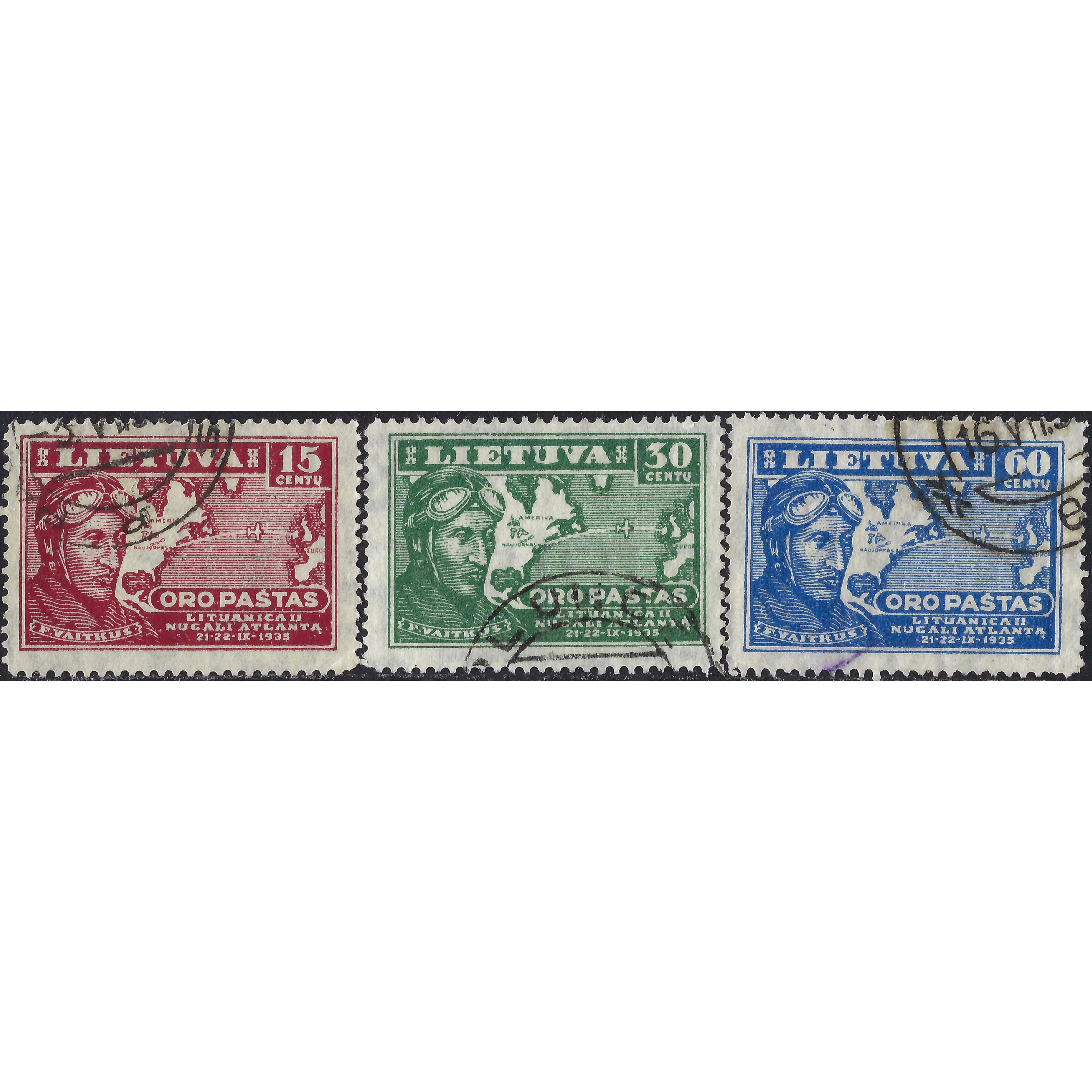 1936, Литва, 15c-60c, Соловьев #400-#402, Литография, ВЗ, P14, Авиапочта