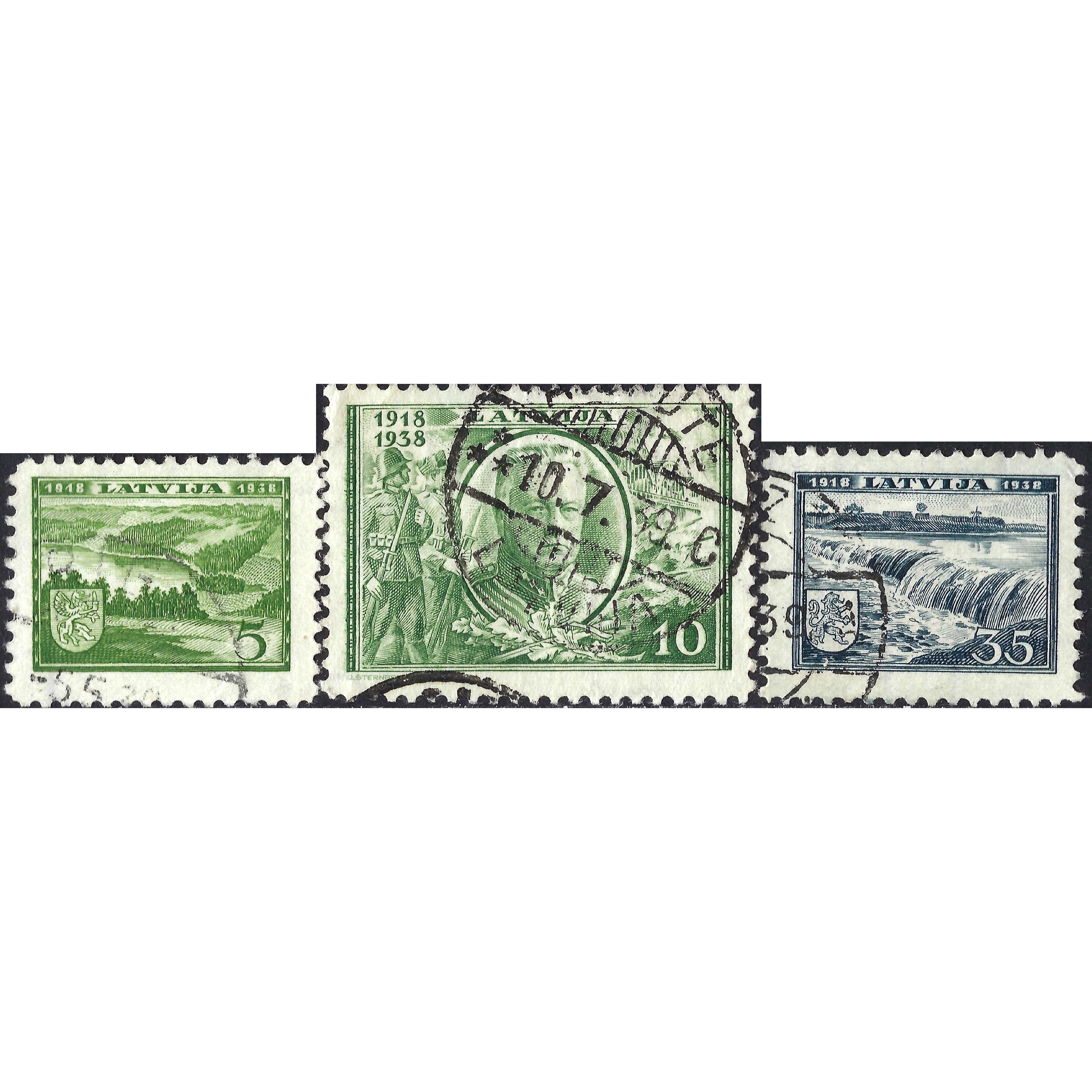 1938, Латвия, 5s-35s, Соловьев #258-#262, Литография, ВЗ, P10.5:10