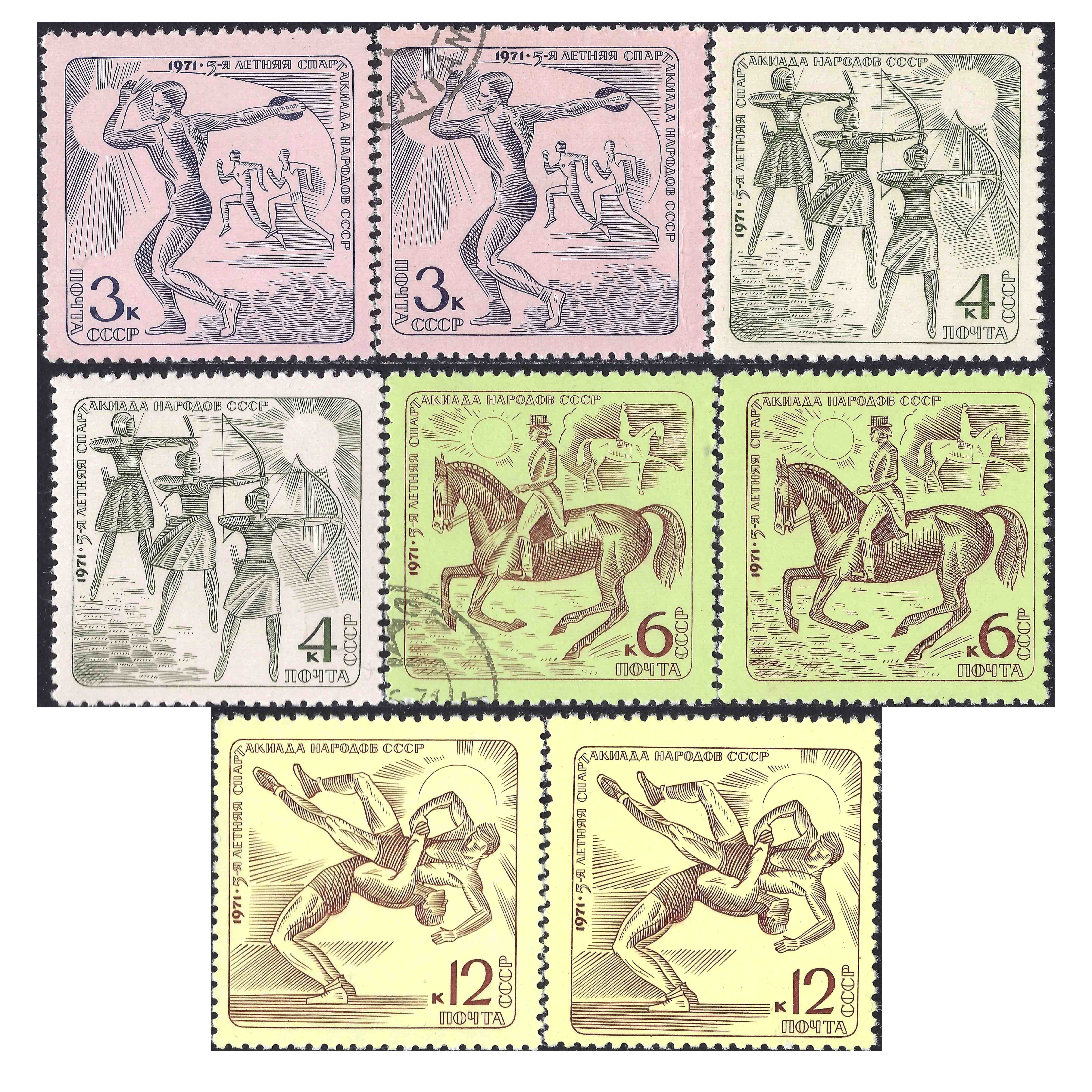 1971, СССР, 3k-12k, Соловьев #4012U-#4016U, Металлография/Офсет, Без ВЗ, P11.5, Спартакиада народов СССР