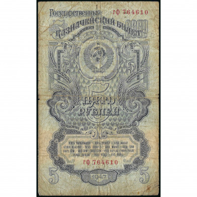 5 Рублей, Россия (СССР), 1947 (XF), Pick 220