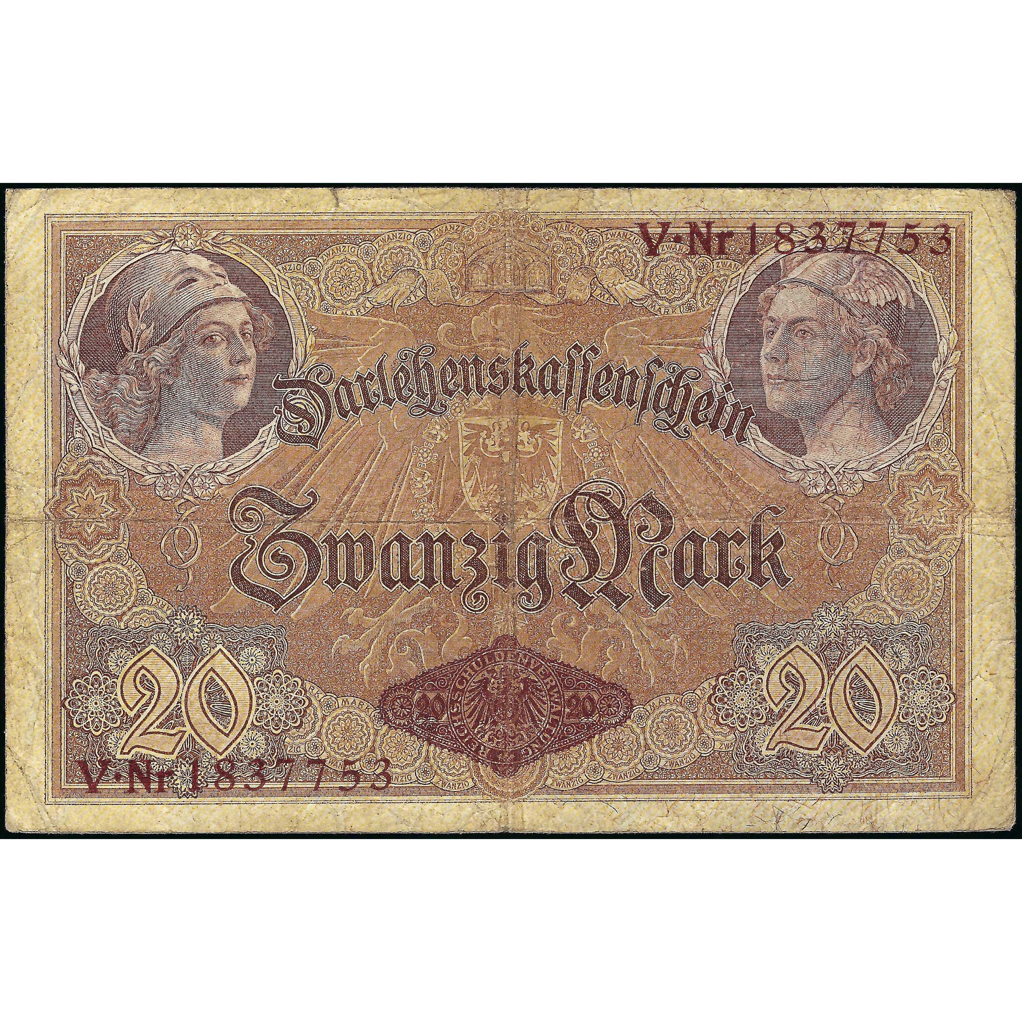 20 Марок, Германия, 1914 (F), 7-значный серийный номер, Pick 48b