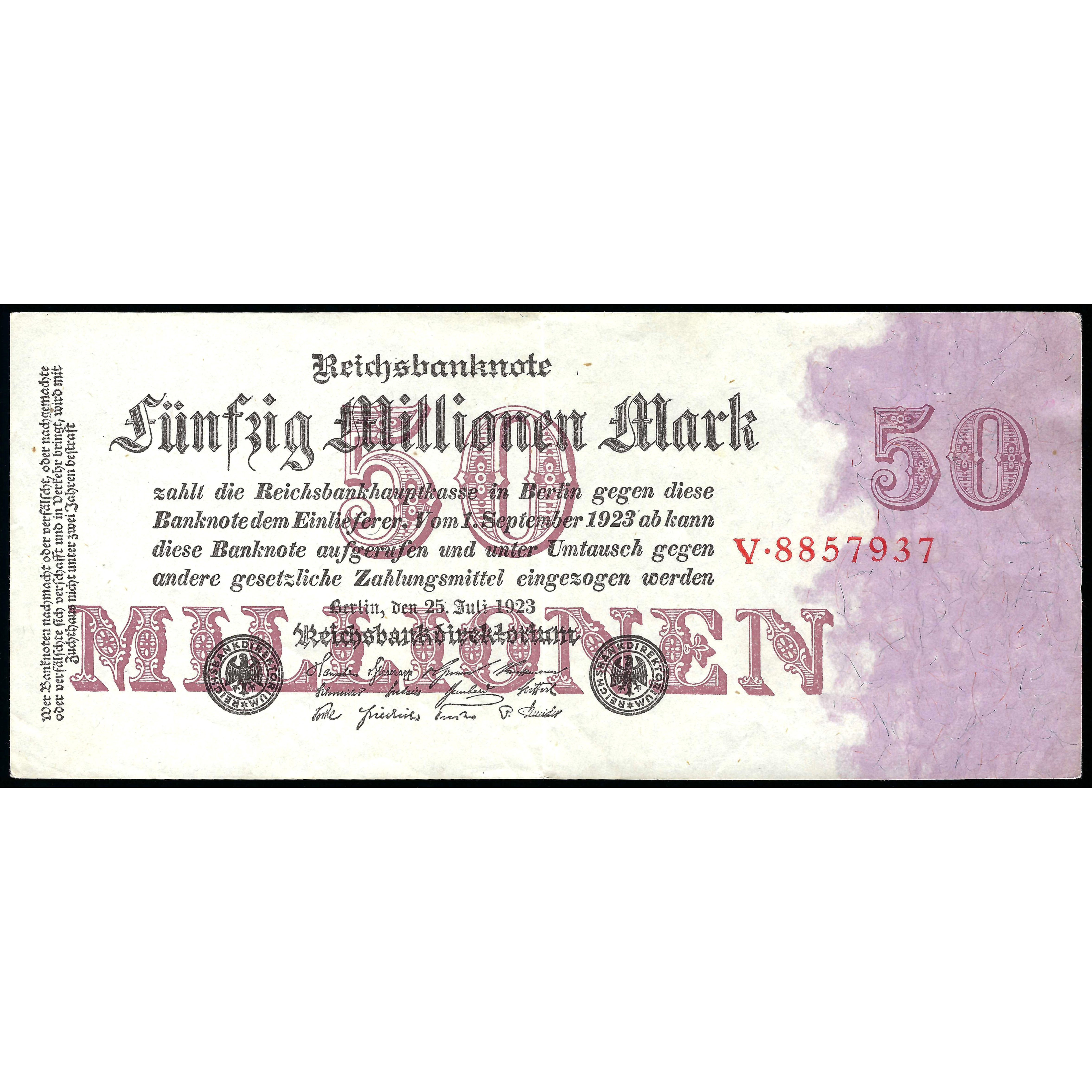 50 Миллионов Марок, Германия, 1923 (AU), 7-значный серийный номер, Pick 98a