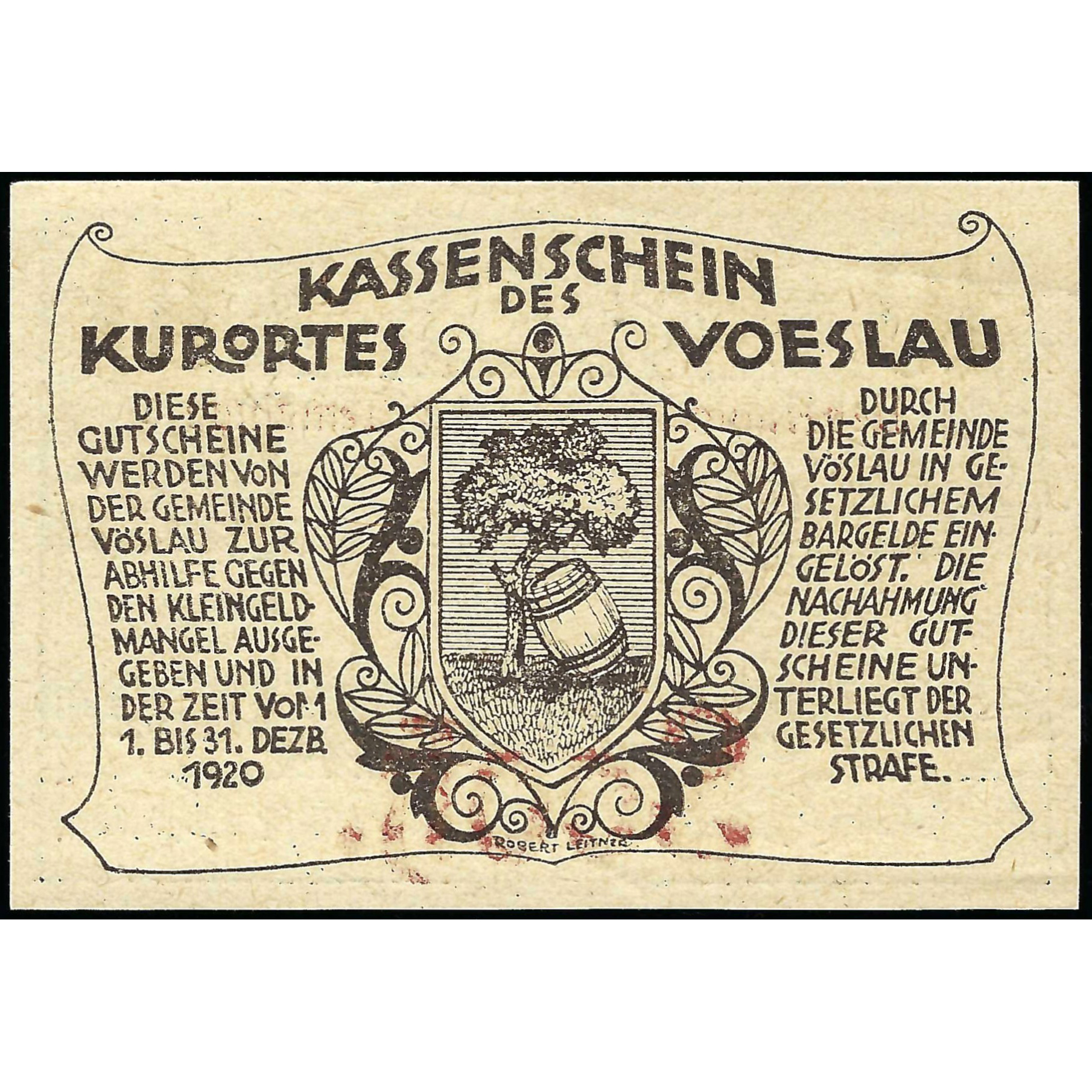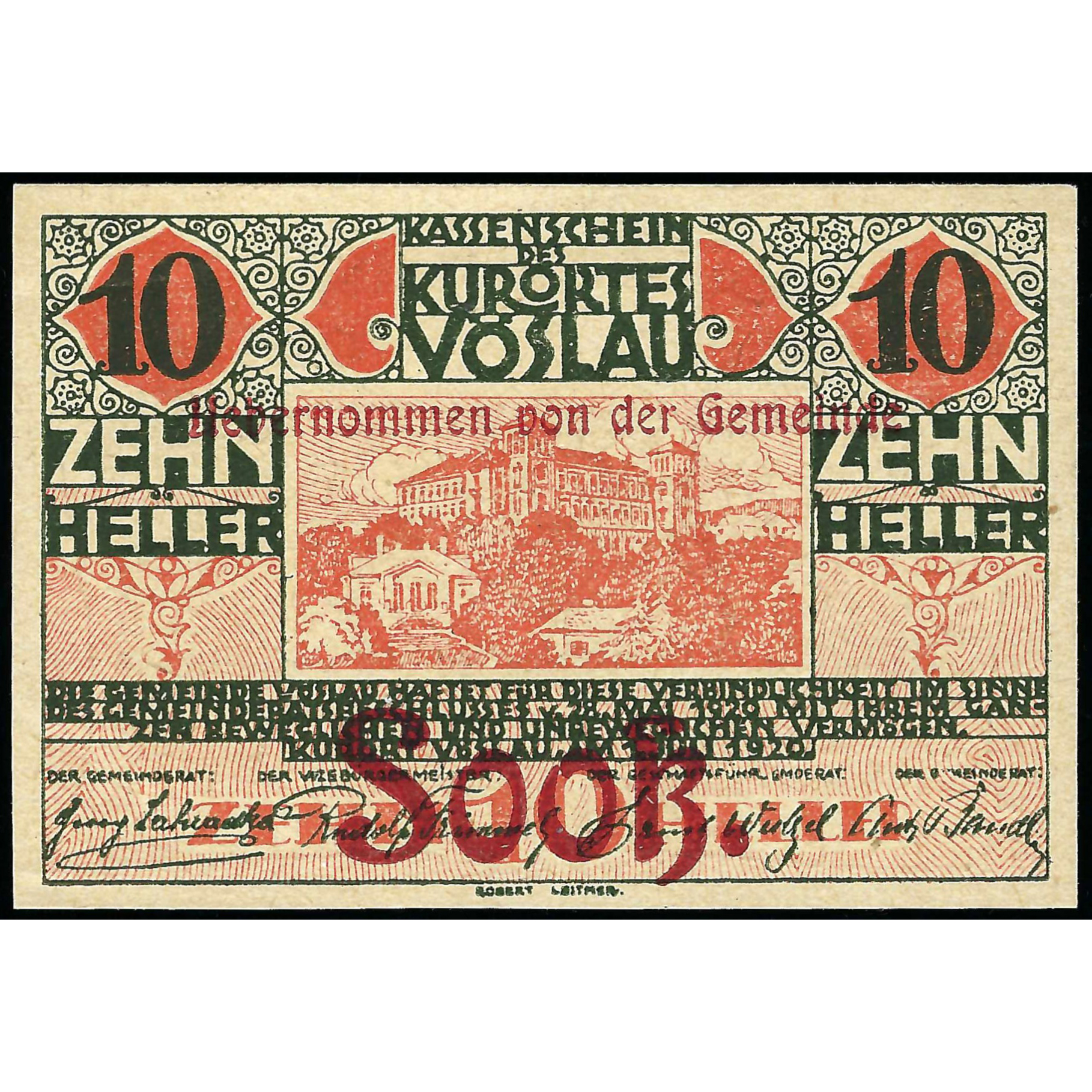 Нотгельд, 10 Геллеров, Австрия - Курортный Город Фёслaу, 1920 г. (UNC)