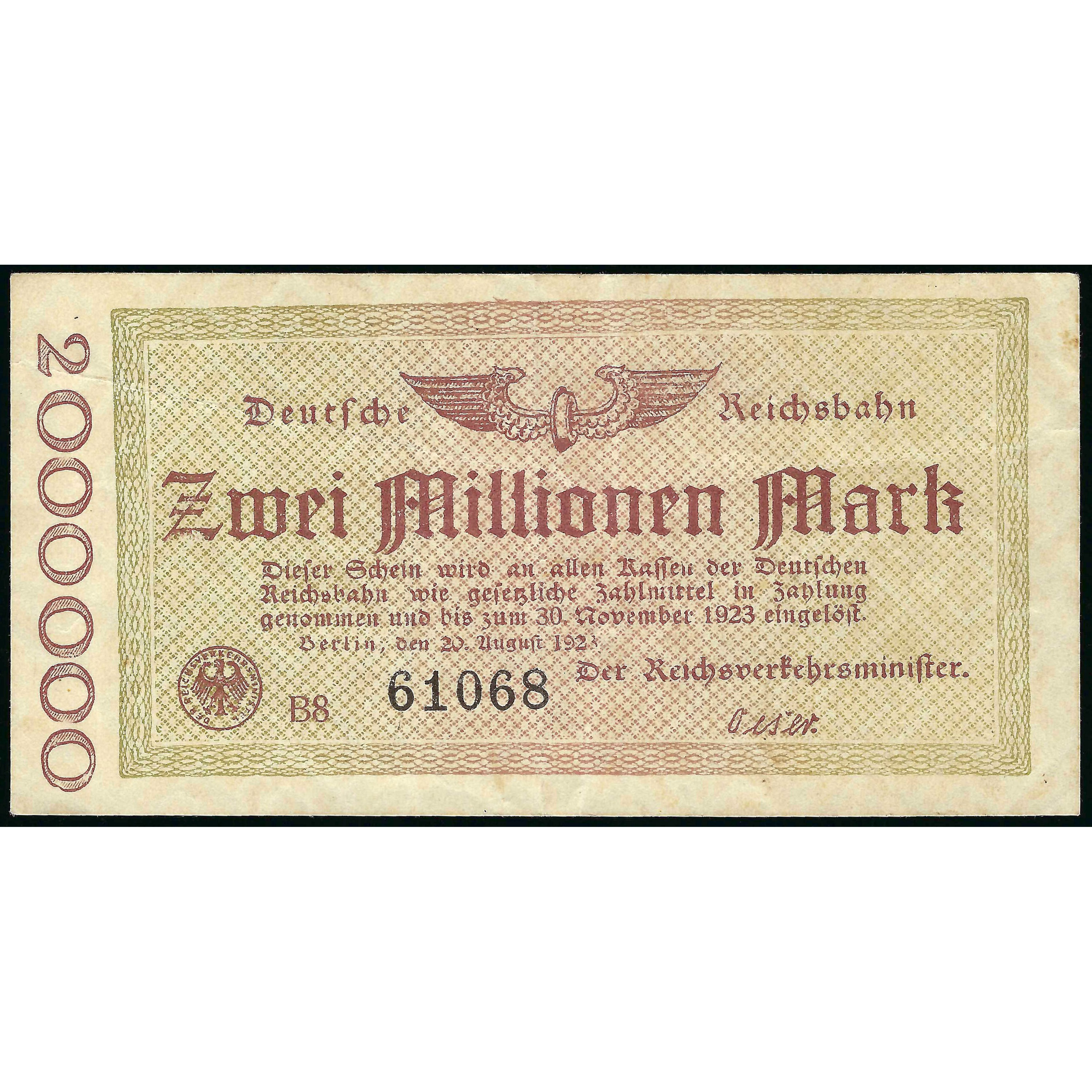 Нотгельд, 2 Миллиона Марок, Германия – Берлин, Германские железные дороги, 1923 (VF), Pick S1012a