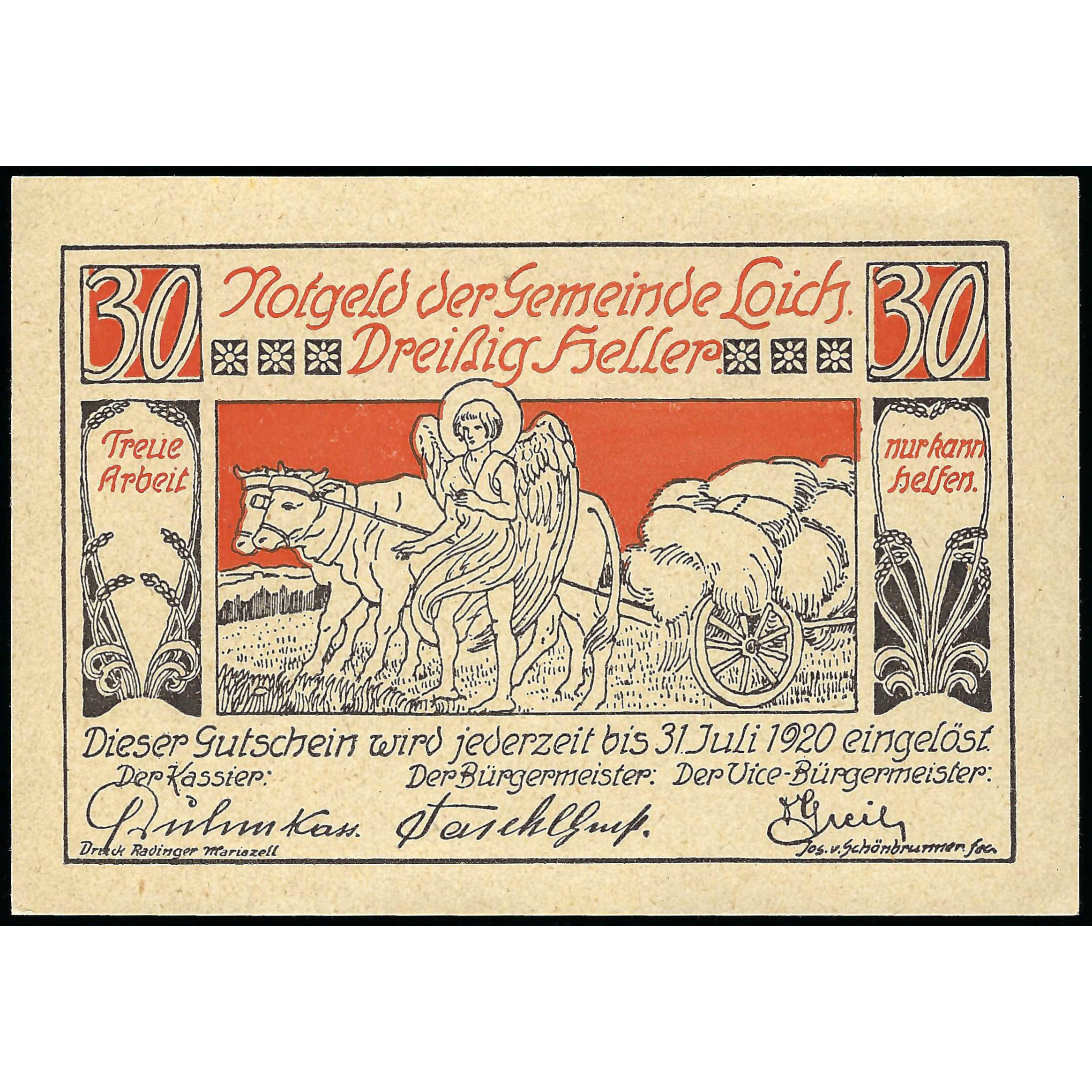 Нотгельд, 30 Геллеров, Австрия - Муниципалитет Лойх, 1920 г. (UNC)