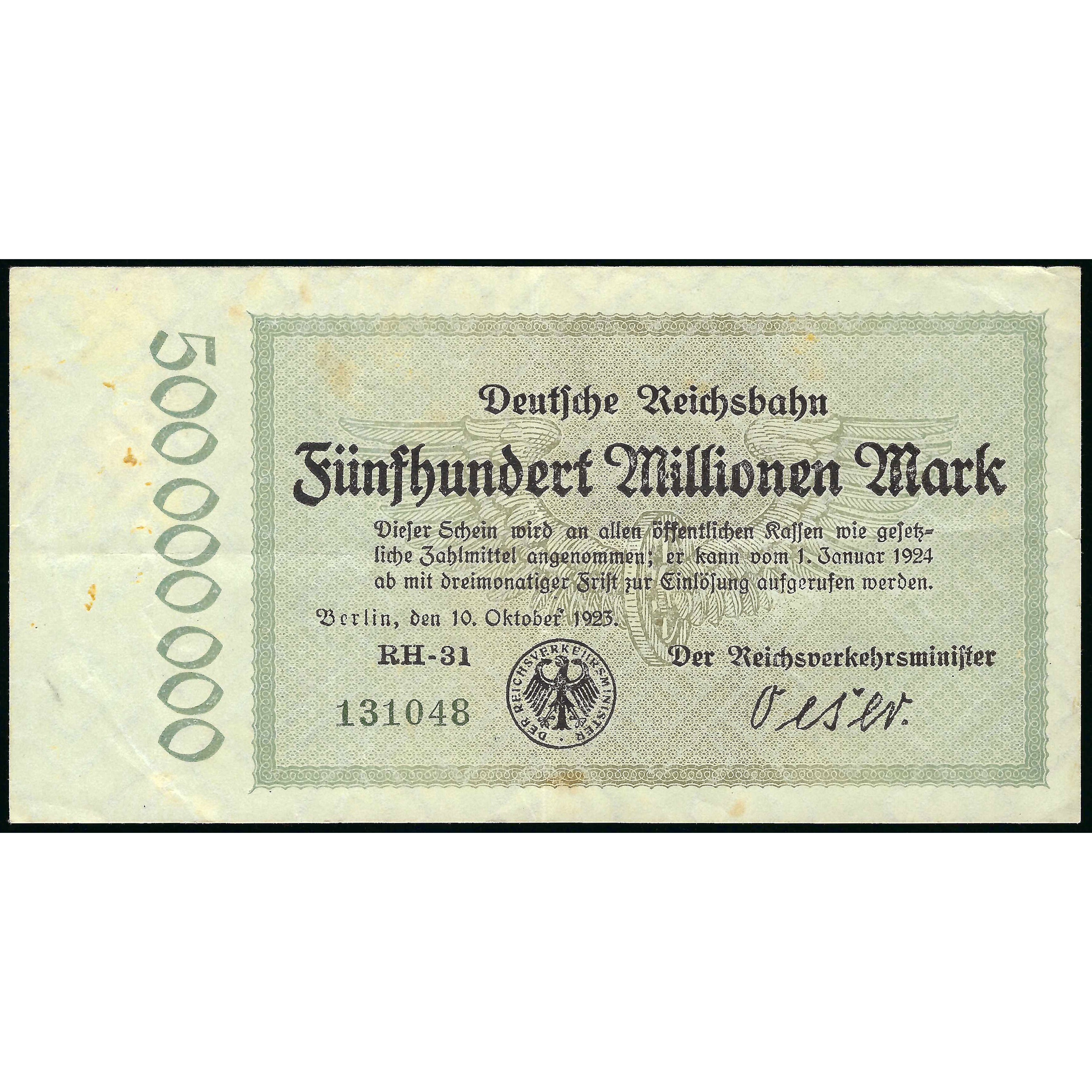 Нотгельд, 500 Миллионов Марок, Германия – Берлин, Германские железные дороги, 1923 (XF), Pick S1019