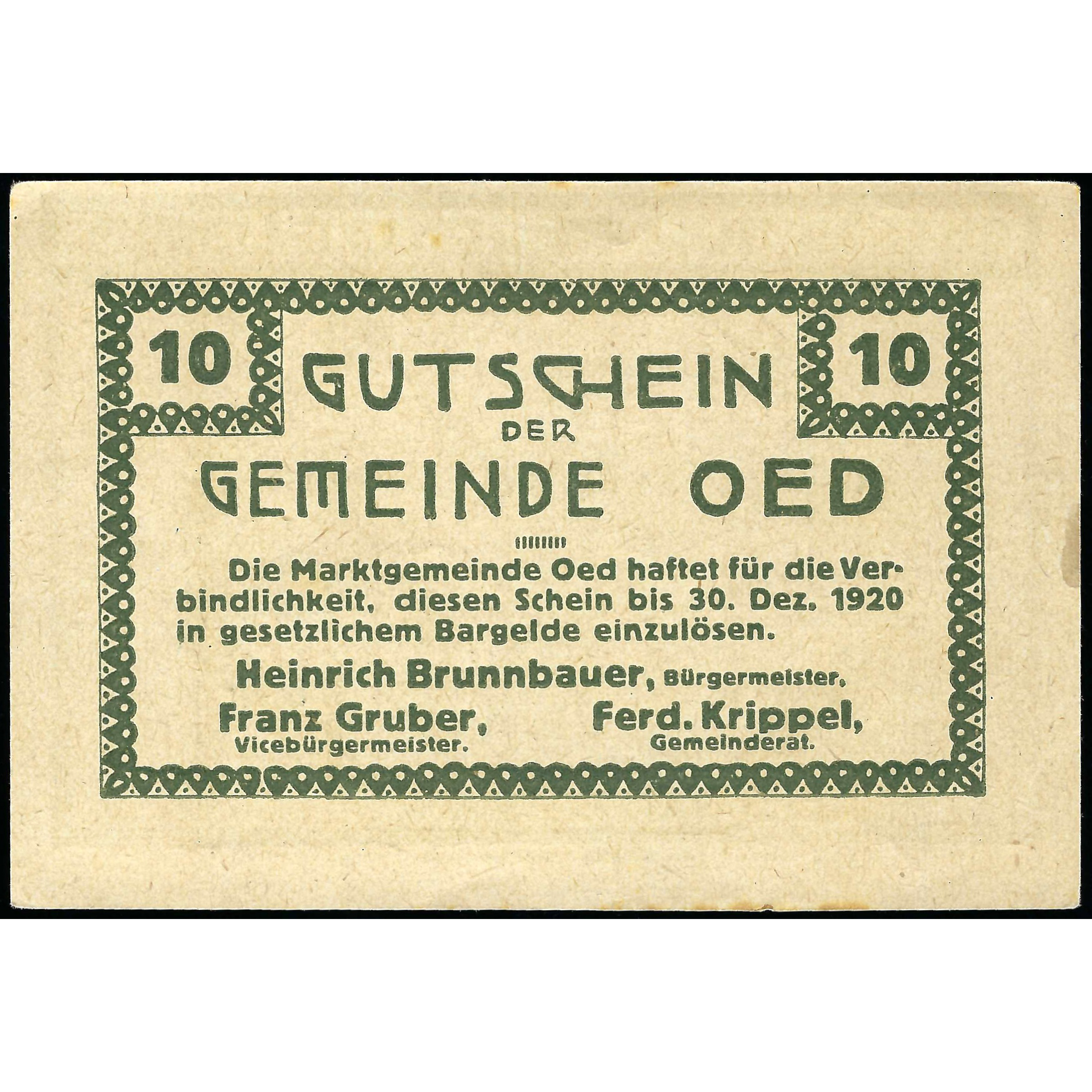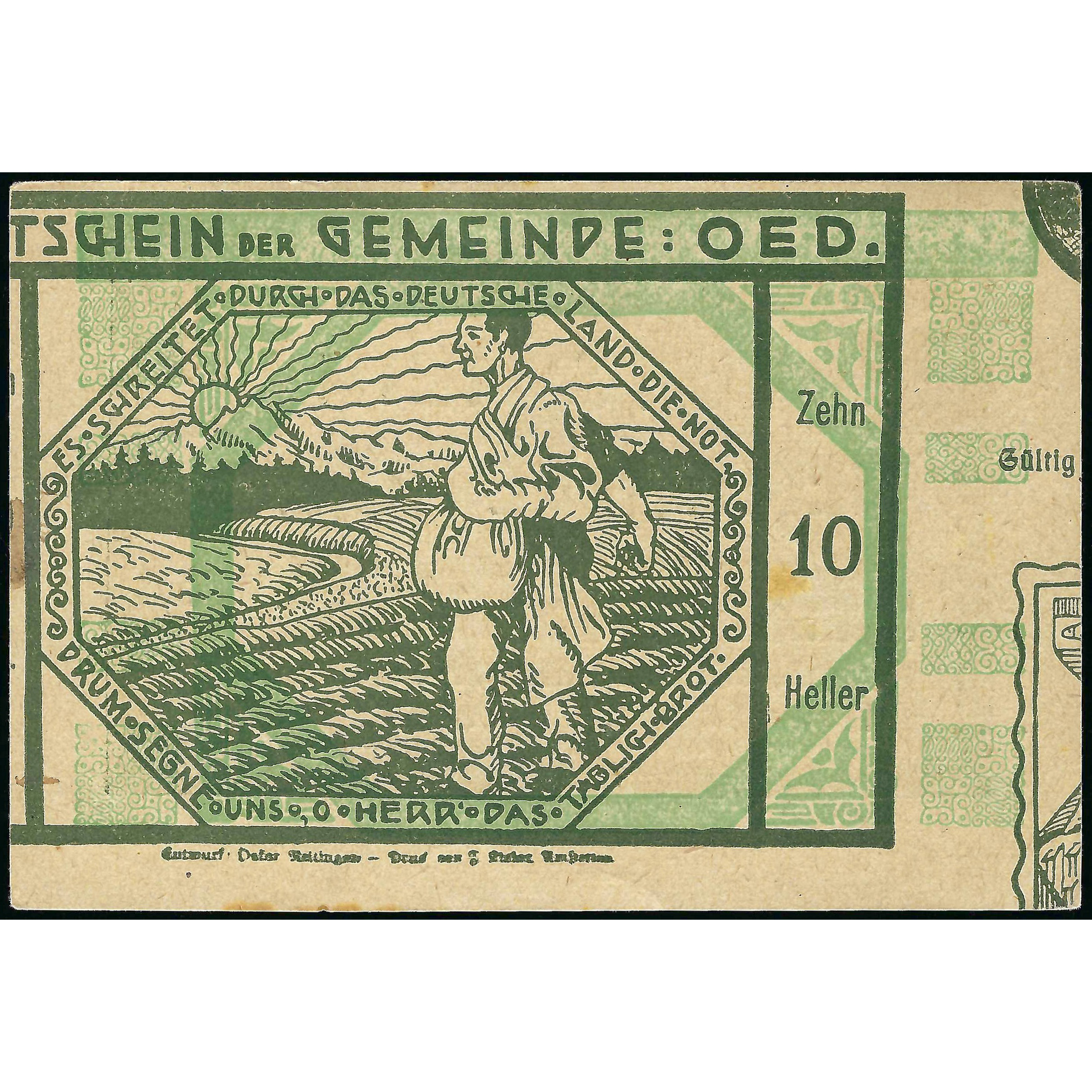 (ОШИБКА) Нотгельд, 10 Геллеров, Австрия - Торговый Городок Эд, 1920 г. (XF)
