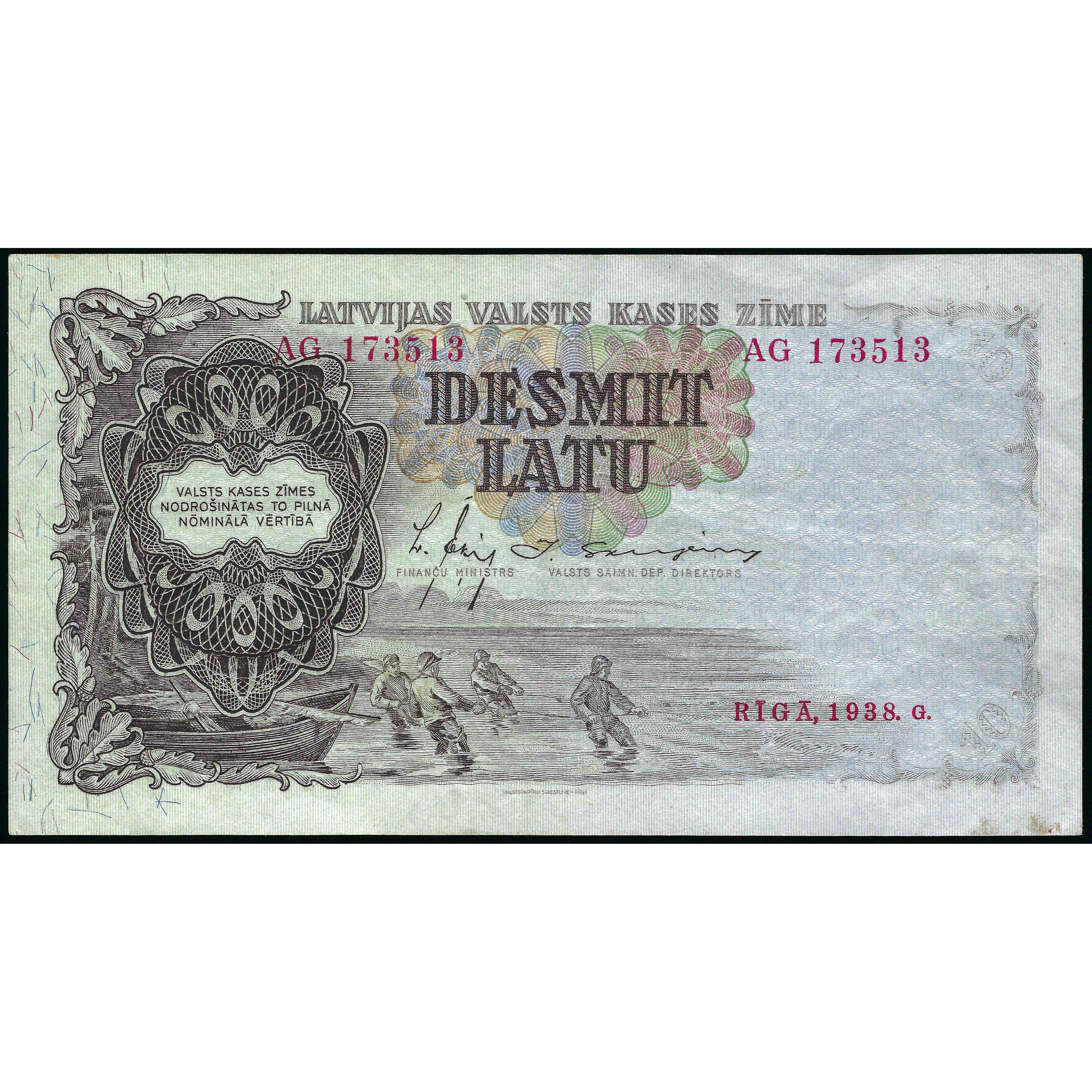 10 Лат, Латвия, 1938 г. (XF), Pick 29b