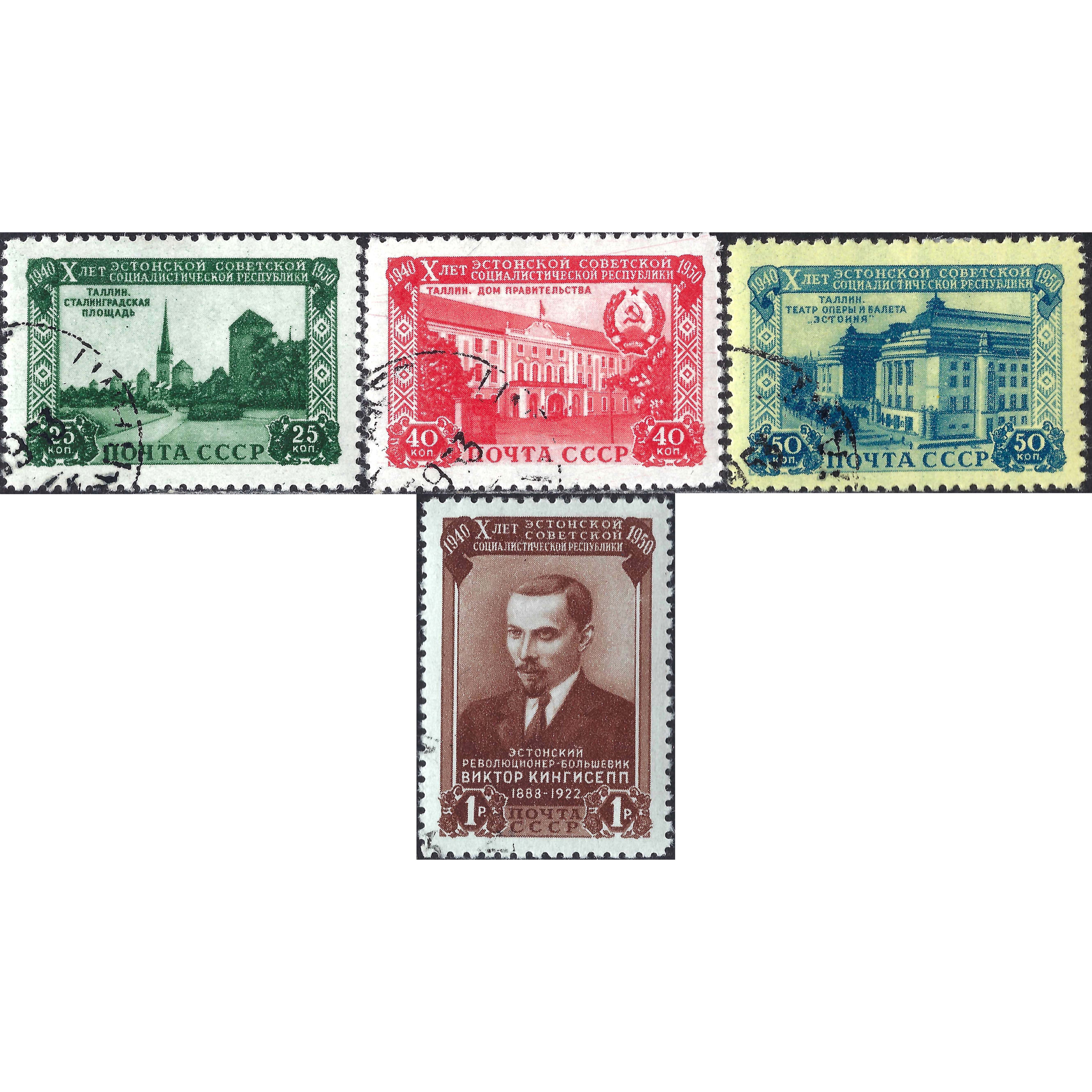1950, СССР, 25k-1Rub, Соловьев #1552-#1555 / Мишель #1503-#1506, Глубокая печать, Без ВЗ, P12.5